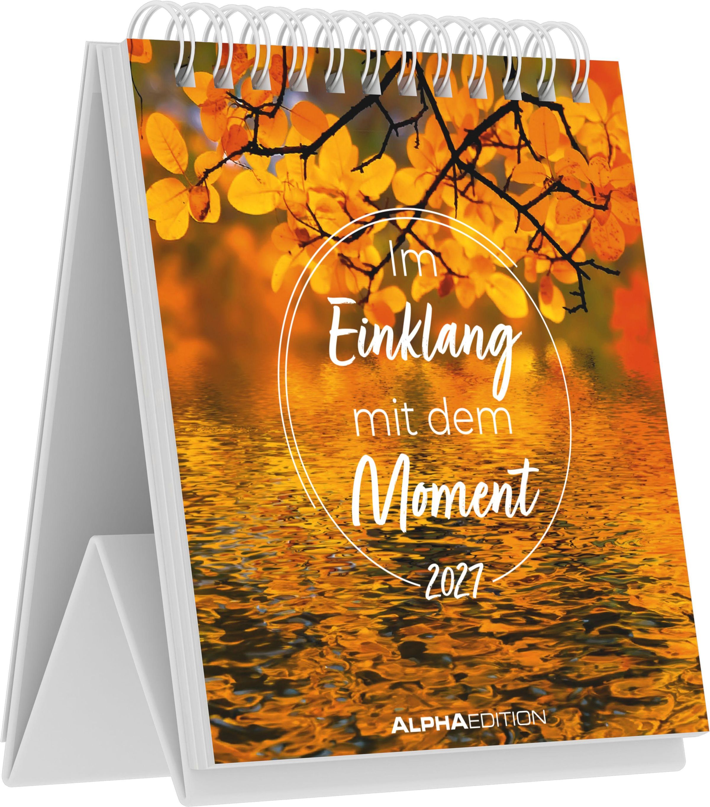 Mit Im Einklang mit dem Moment 2027 holst du dir Woche für Woche kleine Ruheinseln in den Alltag. Der Mini-Tischaufstellkalender begleitet dich durch 53 Wochen mit stimmungsvollen Fotografien und ausgewählten Sinnsprüchen, Weisheiten und inspirierenden Gedanken. Ob als achtsamer Start in den Tag, als kurze Erinnerung zwischendurch oder als motivierender Blickfang am Arbeitsplatz: Dieser Kalender schenkt dir Momente zum Innehalten, Durchatmen und Neu-Ausrichten -- im typischen, hochwertigen Stil der Alpha Edition.