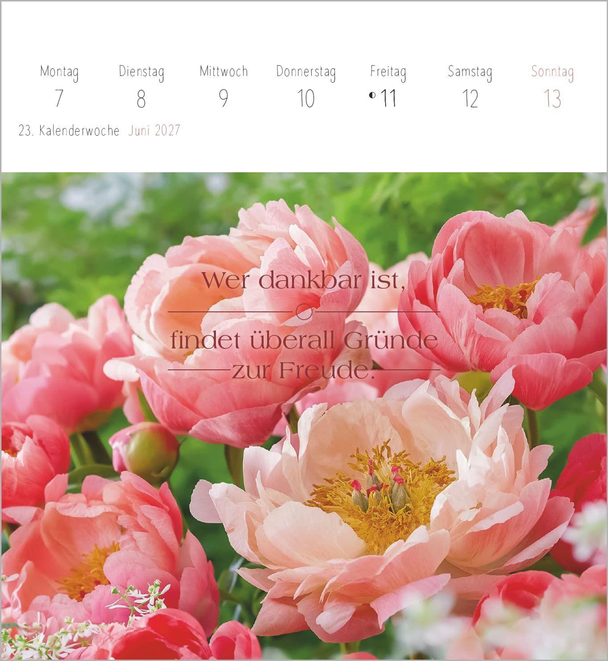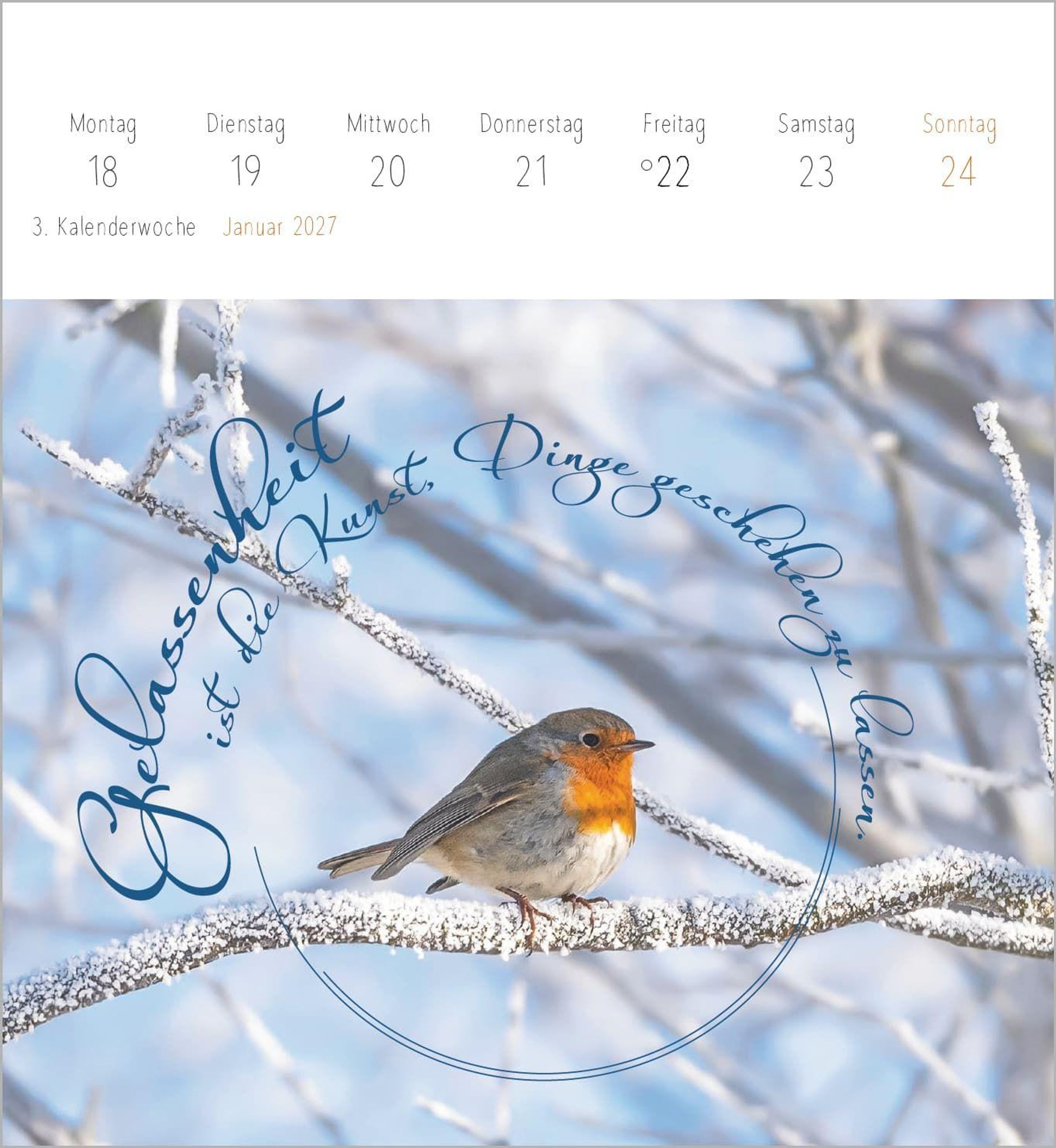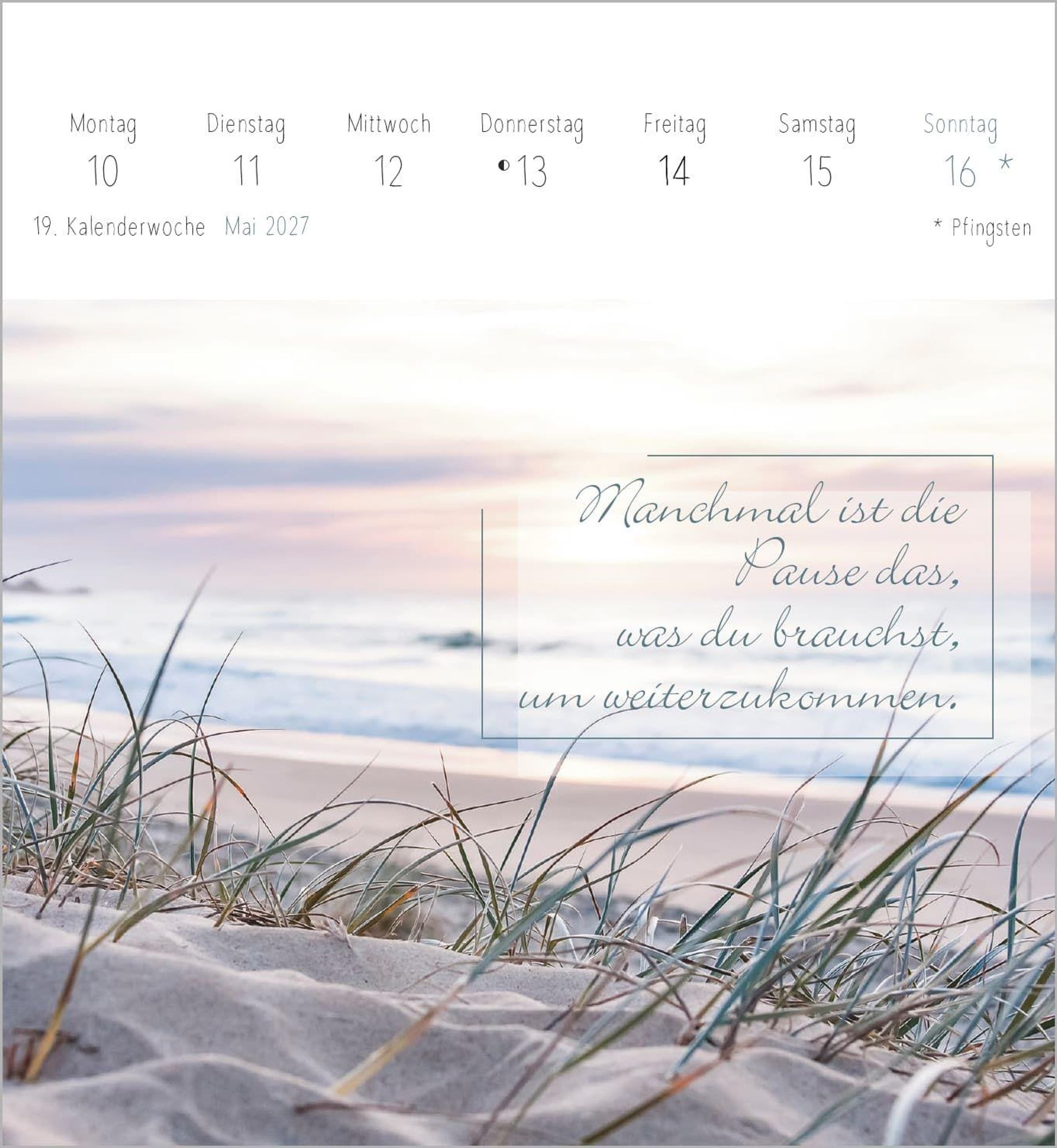Im Einklang mit dem Moment ist ein kleiner Kalender mit großer Wirkung: ein wöchentlicher Begleiter für alle, die sich nach mehr Gelassenheit, Zuversicht und inspirierenden Gedanken im Alltag sehnen.