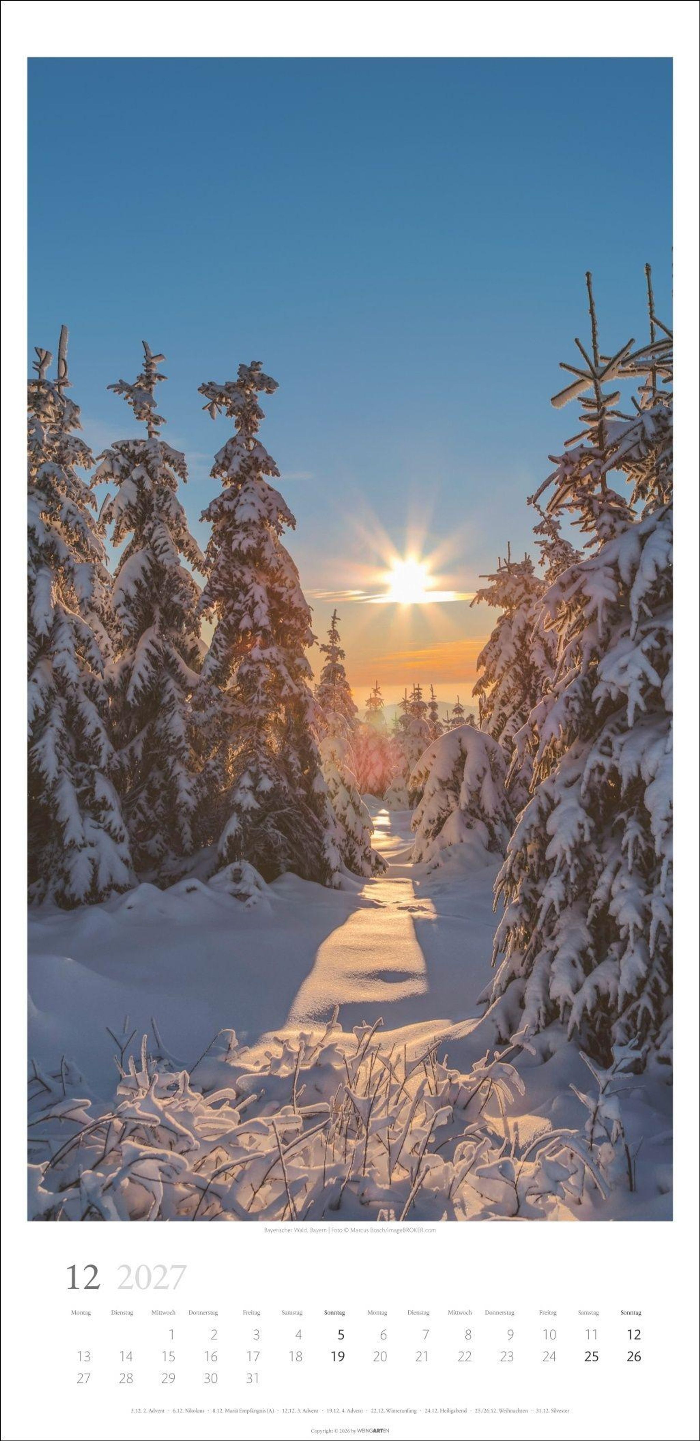 Majestätische Bäume und faszinierende Lichtspiele: Waldbaden im neuen Jahres-Wandkalender 2027