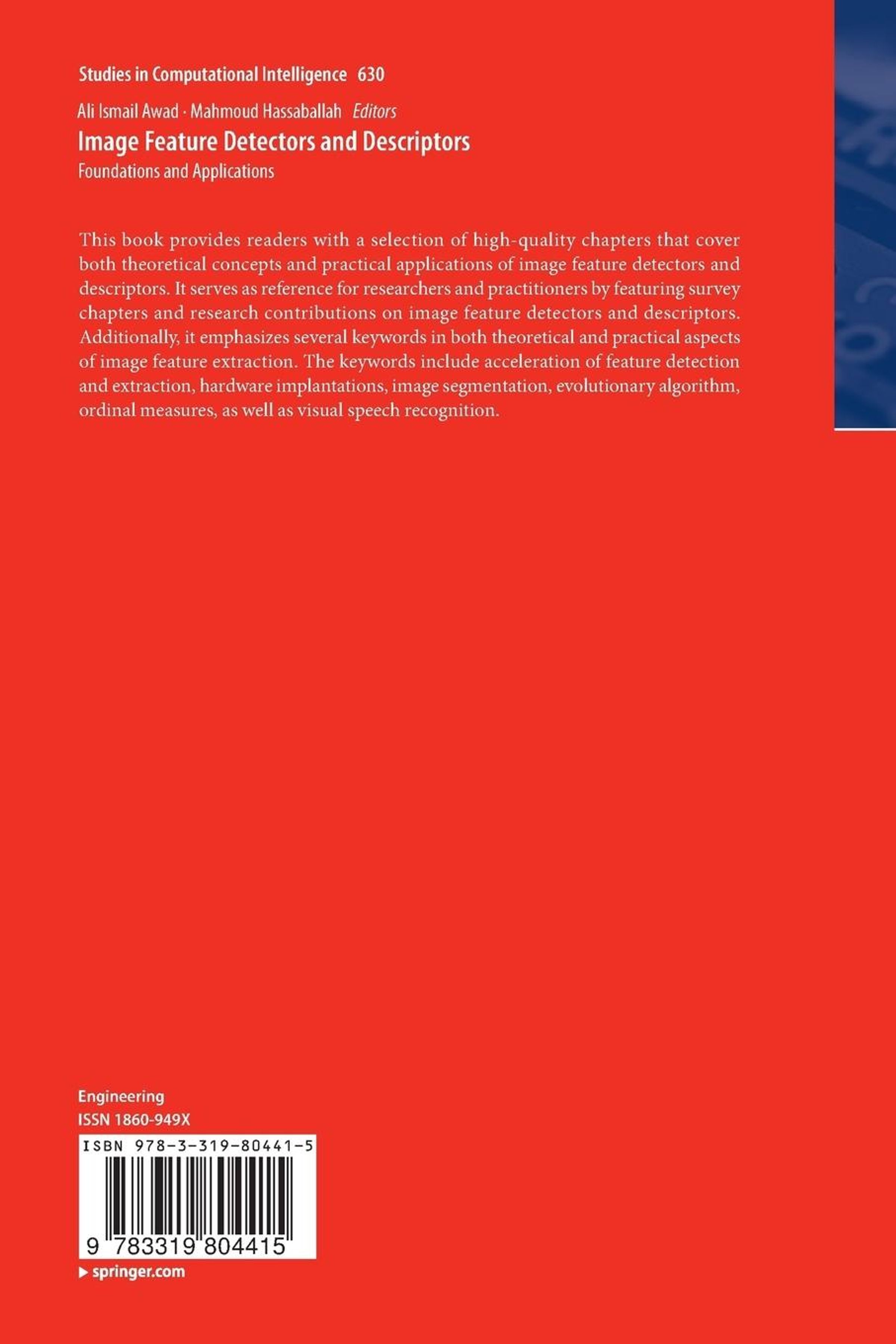 This book provides readers with a selection of high-quality chapters that cover both theoretical concepts and practical applications of image feature detectors and descriptors. It serves as reference for researchers and practitioners by featuring survey chapters and research contributions on image feature detectors and descriptors. Additionally, it emphasizes several keywords in both theoretical and practical aspects of image feature extraction. The keywords include acceleration of feature detection and extraction, hardware implantations, image segmentation, evolutionary algorithm, ordinal measures, as well as visual speech recognition.