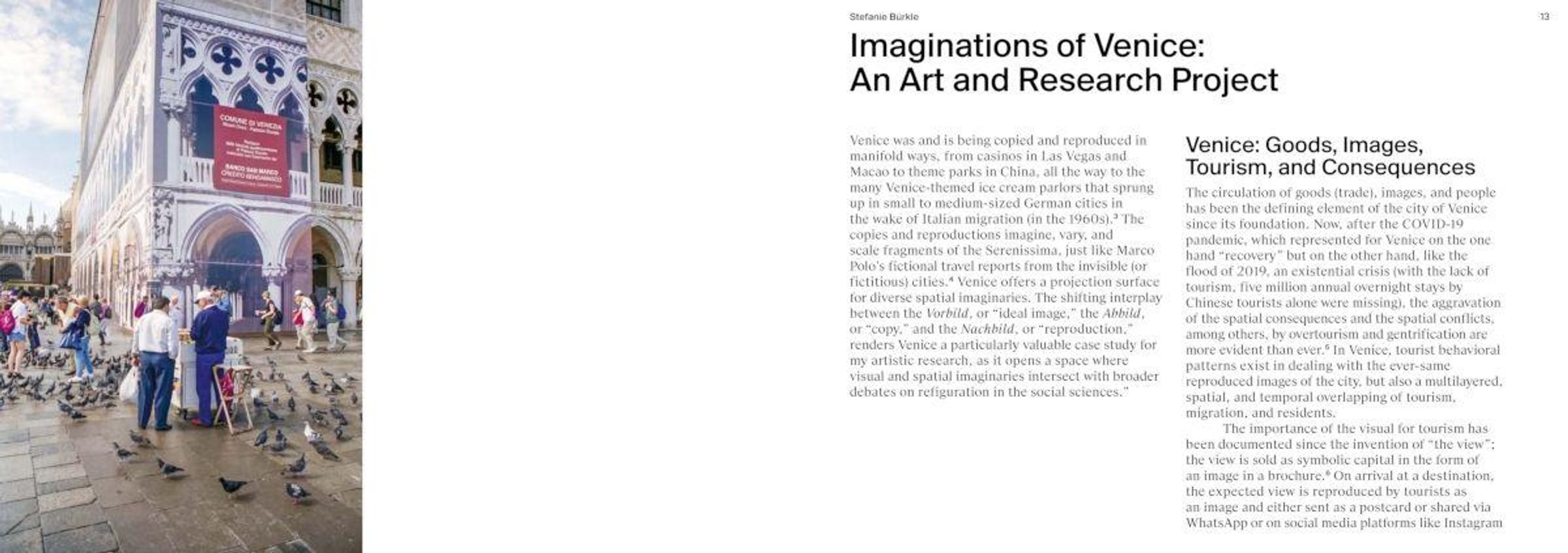 Venice exists not only as a place but as a circulating image-reproduced endlessly, mirrored across the globe, and embedded in cultural memory. For over 25 years, Stefanie Bürkle has photographed both the city and its replicas, exploring how Venice becomes a projection for spatial desire. Venice unfolds not as a single city but as a network of imaginations-reflected in fragments, fictions, and facades. This volume brings together analog and digital photographs from her long-term archive, accompanied by texts by Kristina Lovaas. Additionally, there is a fold-out map of Bürkle's Imagination of Venice atlas. The publication is part of the artistic research project Imaginations of Venice, within CRC 1265 Re-Figuration of Spaces, Technische Universität Berlin.