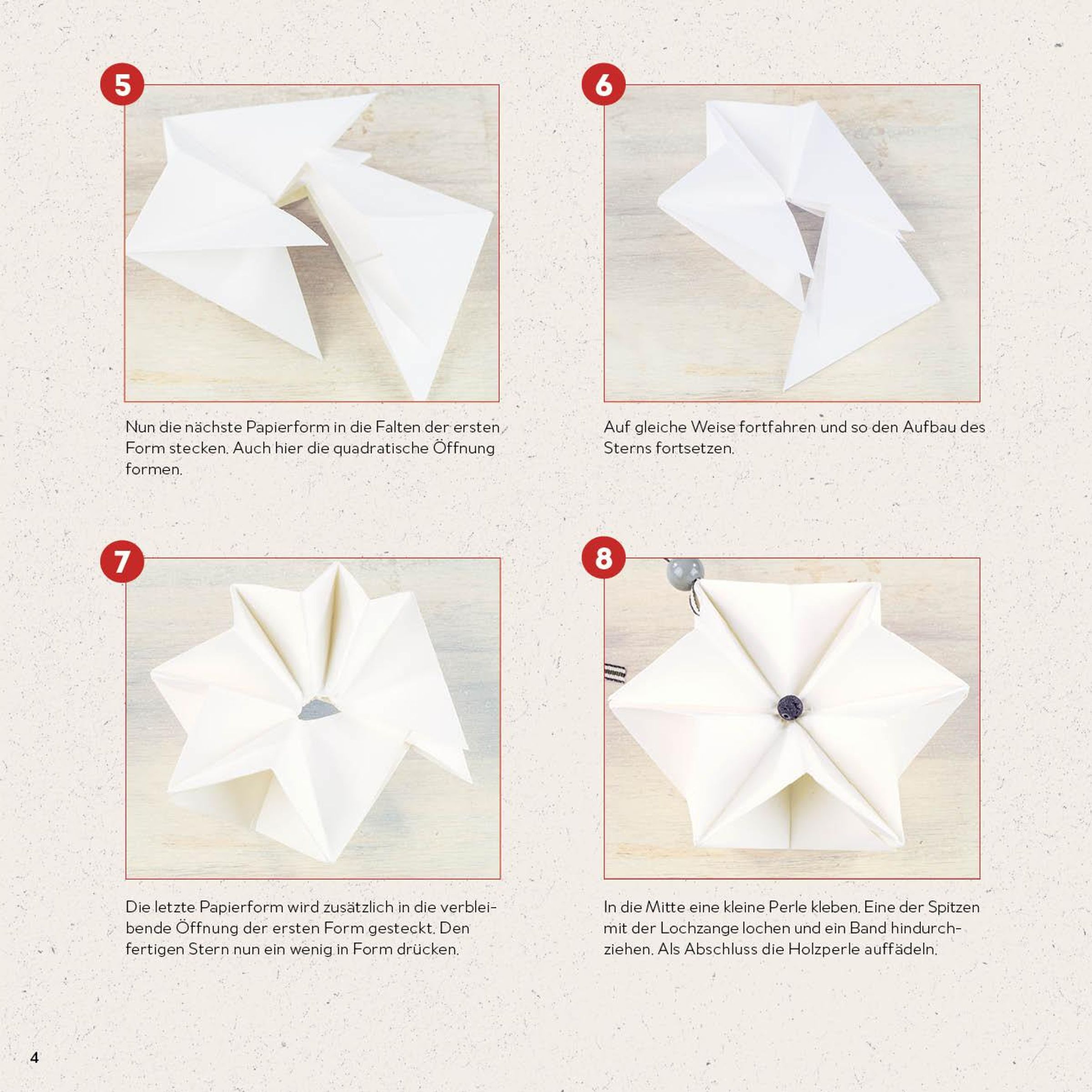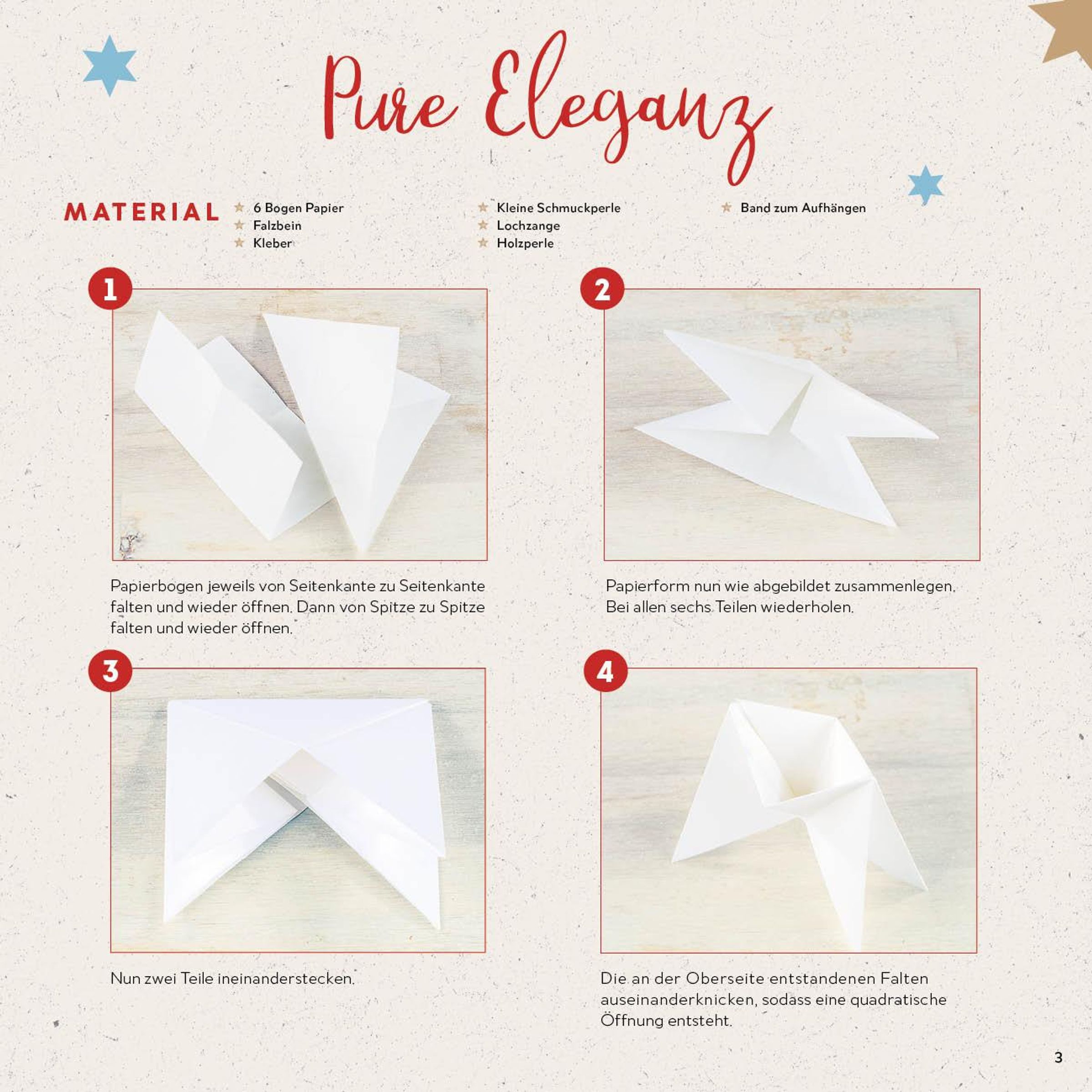 - Bastelset mit 8 Anleitungen für Faltsterne und 96 Motivpapieren