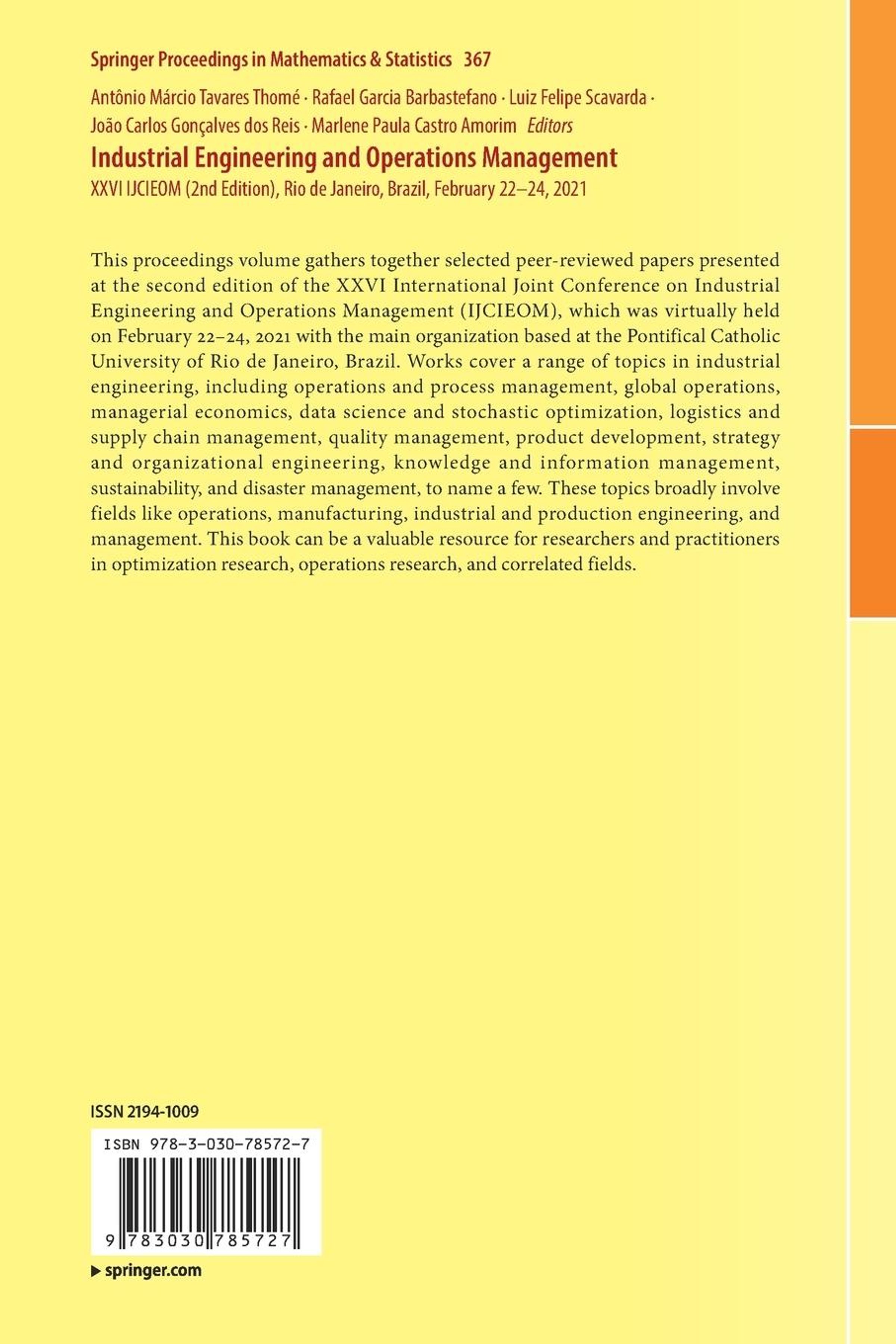 This proceedings volume gathers together selected peer-reviewed papers presented at the second edition of the XXVI International Joint Conference on Industrial Engineering and Operations Management (IJCIEOM), which was virtually held on February 22-24, 2021 with the main organization based at the Pontifical Catholic University of Rio de Janeiro, Brazil. Works cover a range of topics in industrial engineering, including operations and process management, global operations, managerial economics, data science and stochastic optimization, logistics and supply chain management, quality management, product development, strategy and organizational engineering, knowledge and information management, sustainability, and disaster management, to name a few. These topics broadly involve fields like operations, manufacturing, industrial and production engineering, and management. This book can be a valuable resource for researchers and practitioners in optimization research, operations research, and correlated fields.