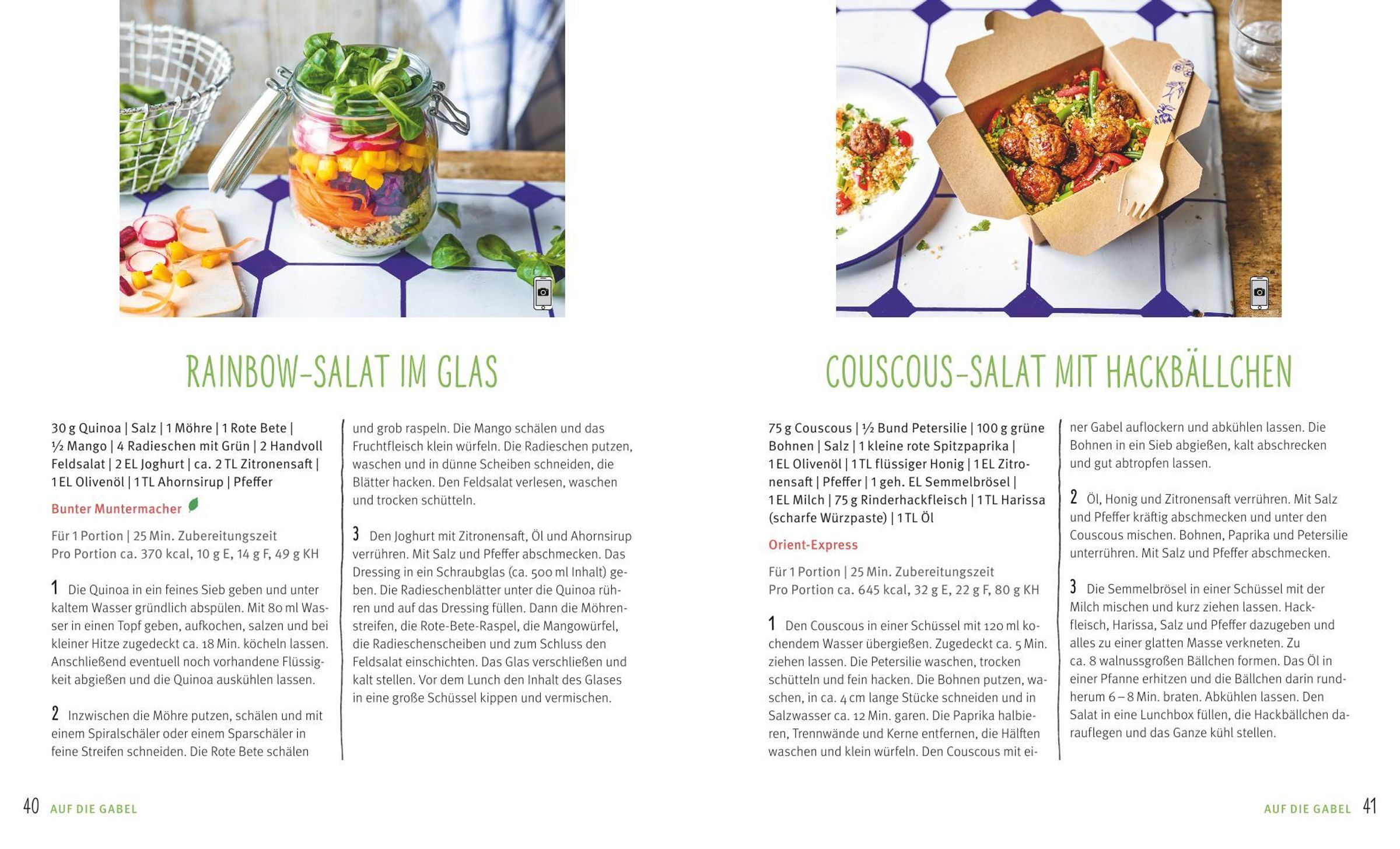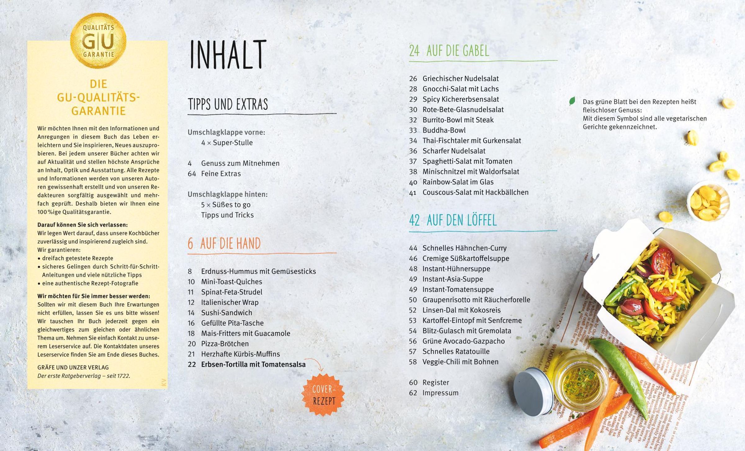 Mmmh ... ist doch verführerisch, oder? Was nach ambitionierter Gourmet-Küche klingt, ist einfach gemacht und wartet ab jetzt in Ihrer Lunchbox auf den großen Auftritt in der Mittagspause. Sagen Sie fettigem Fastfood und Co. also getrost adieu, kochen Sie zu Hause vor und belohnen Sie sich mit Geschmack, wie in Ihrem Lieblings-Bistro. Raffinierte Gabelhappen, Trendsuppen, Salate ... alles appetitlich verpackt und griffbereit, wenn der große Hunger kommt!