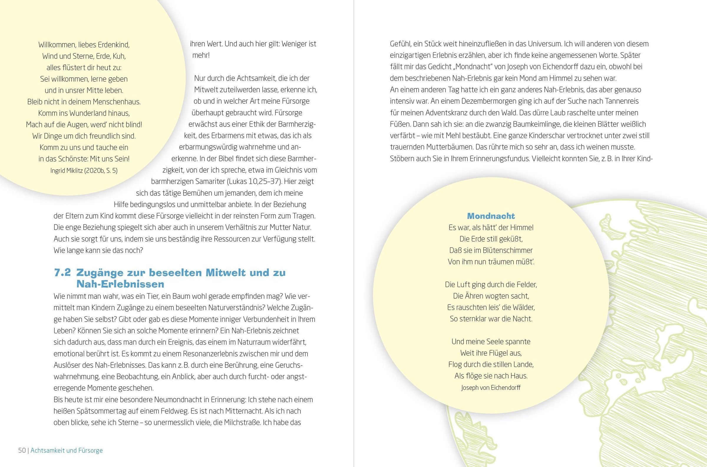 Die Kita ist ein verantwortungsethischer Lebens- und Lernort, der Veränderungsprozesse anstoßen und Kinder und Eltern mitnehmen kann auf diesem lohnenswerten Weg. Familien, aber auch Pädagogen und Pädagoginnen, kommt die Aufgabe zu, kindgerechte Wege dahin zu finden. Kinder dürfen beispielsweise lernen, sich in Bescheidenheit zu üben, Dinge wertzuschätzen, Lebensnischen für Tiere und Pflanzen anzulegen und zu pflegen: in Innenräumen, im Außenbereich und im Umfeld der Kita. Ein nachhaltiger Lebensstil ist der Schlüssel dazu, den Klimawandel zu dämpfen und Lebensräume sowie Wildtiere zu schonen und damit eine lebenswerte Welt für die Zukunft zu erhalten. Mehr denn je ist es, in Zeiten von Dürren, Waldbränden, Überschwemmungen und Pandemien notwendig, sich mit gelebter Nachhaltigkeit von Anfang an auseinanderzusetzen.
