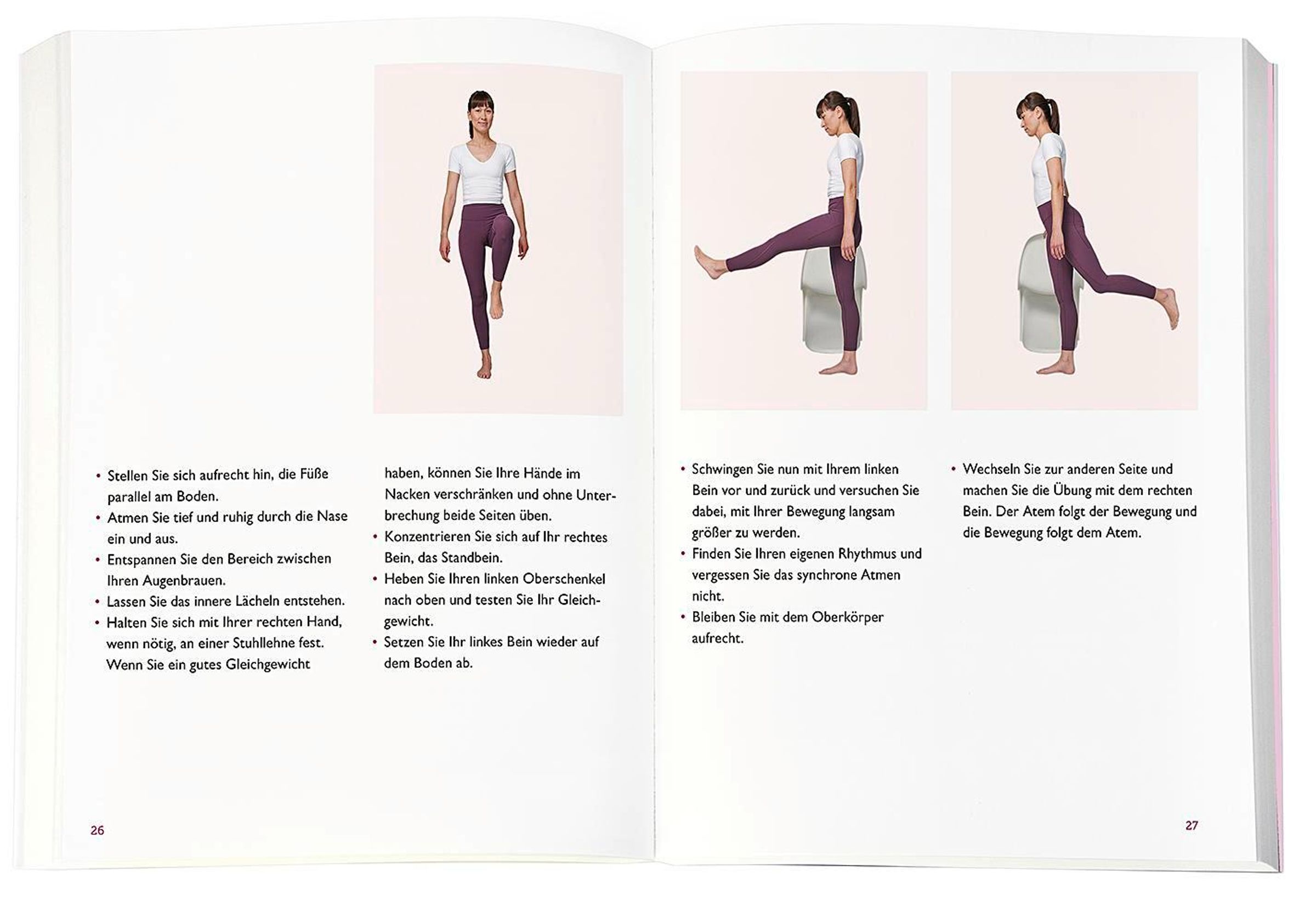 Die Übungen können im Stehen, Sitzen, Knien und Liegen durchgeführt werden und erfordern keine Vorkenntnisse oder besondere Beweglichkeit.
