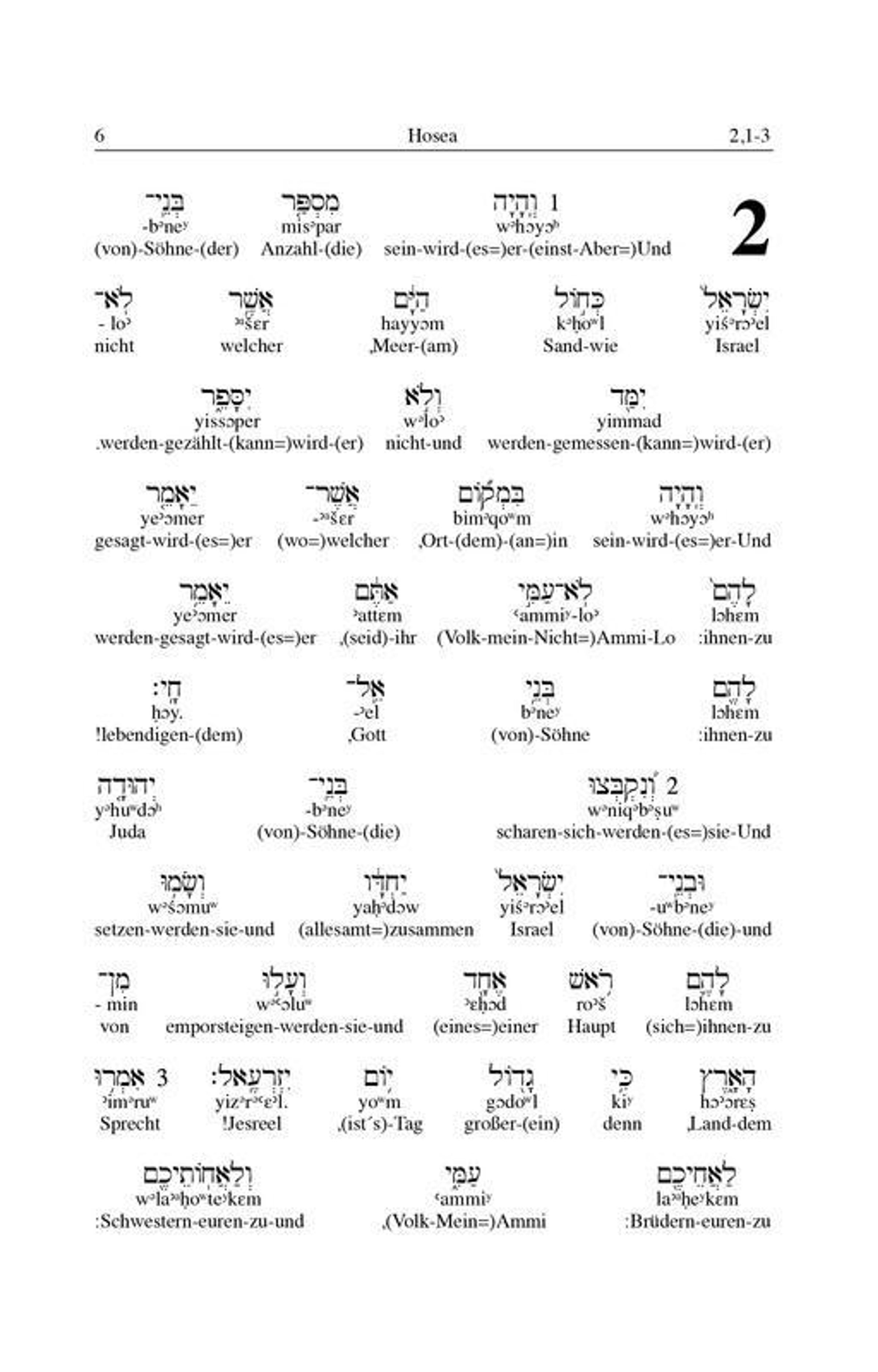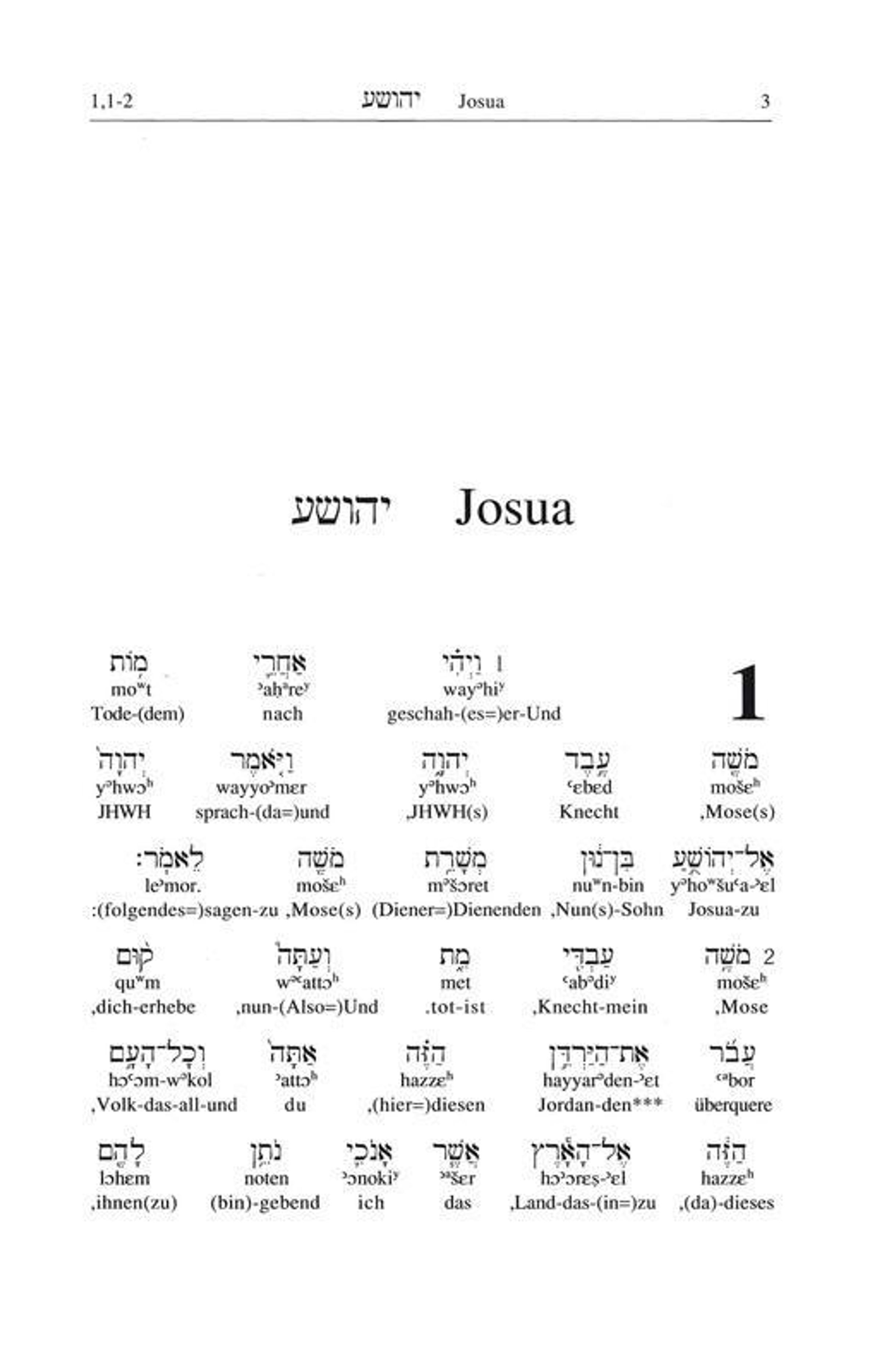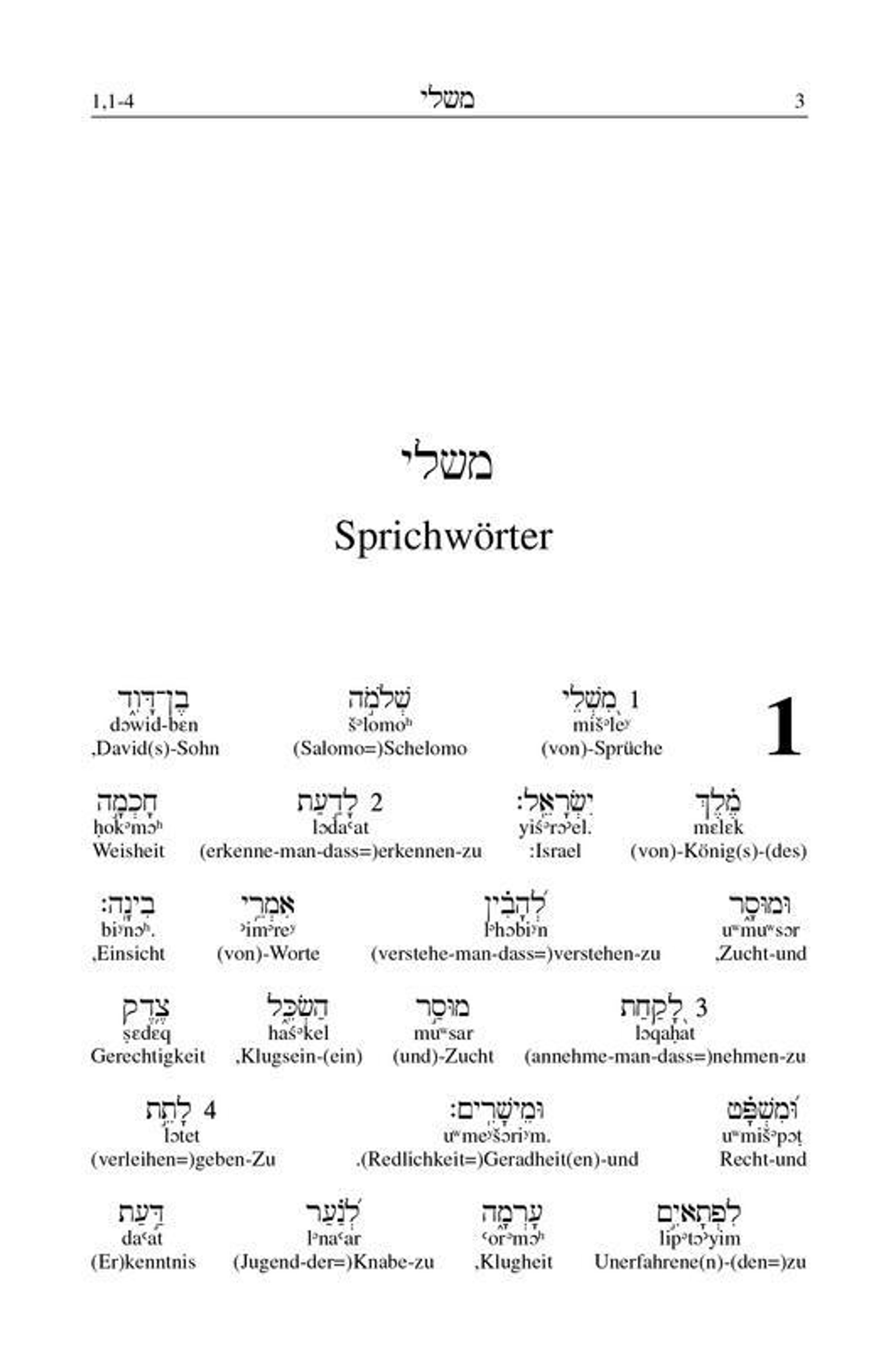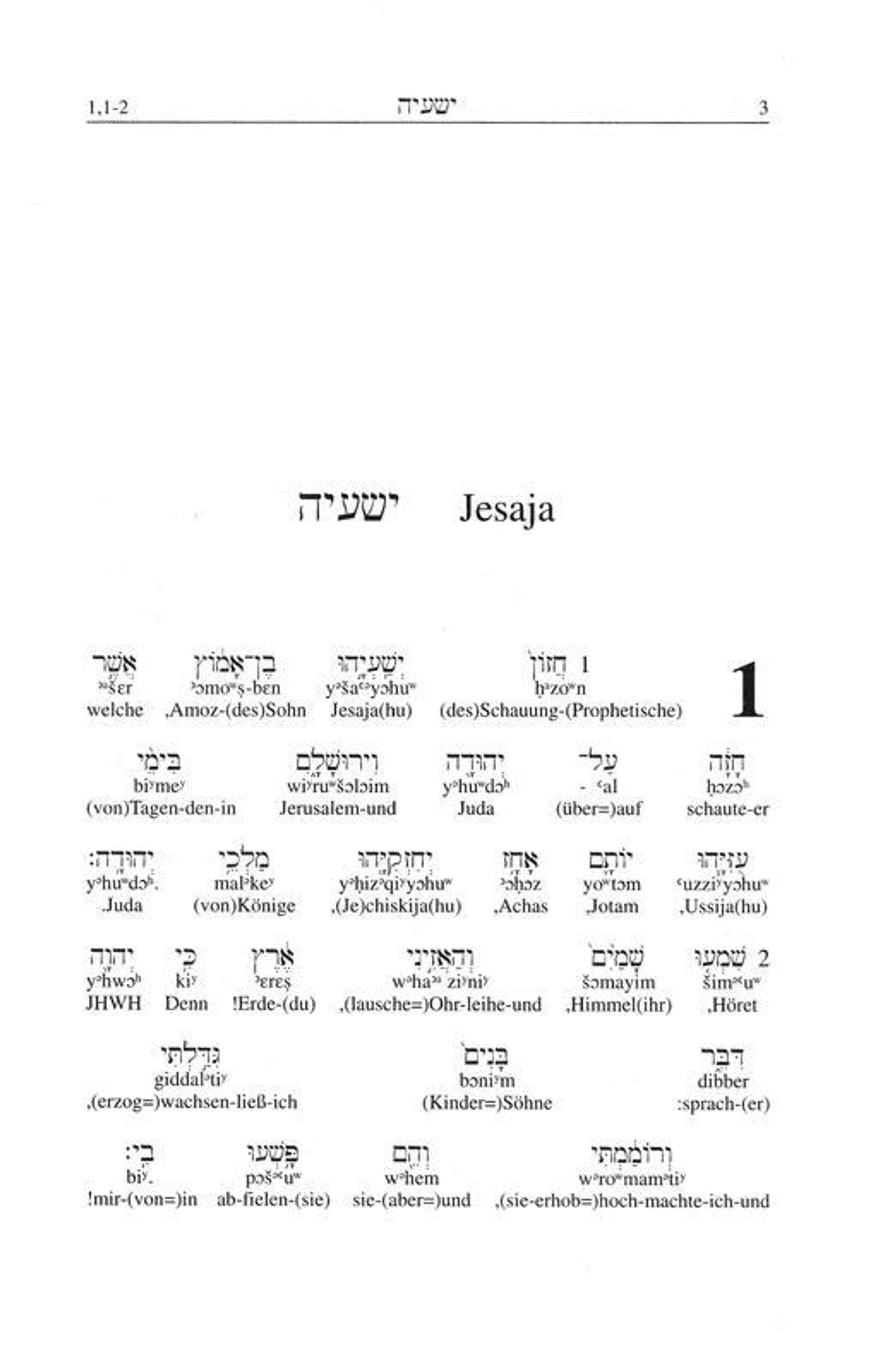 Mit der Interlinearübersetzung können Sie die biblische Botschaft aus der Originalquelle zu schöpfen! Der hebräische Grundtext (auch in Lautschrift) und die deutsche Übersetzung stehen direkt untereinander. So können Sie selbst nachprüfen, was im Urtext steht - und das ohne Sprachkenntnisse!