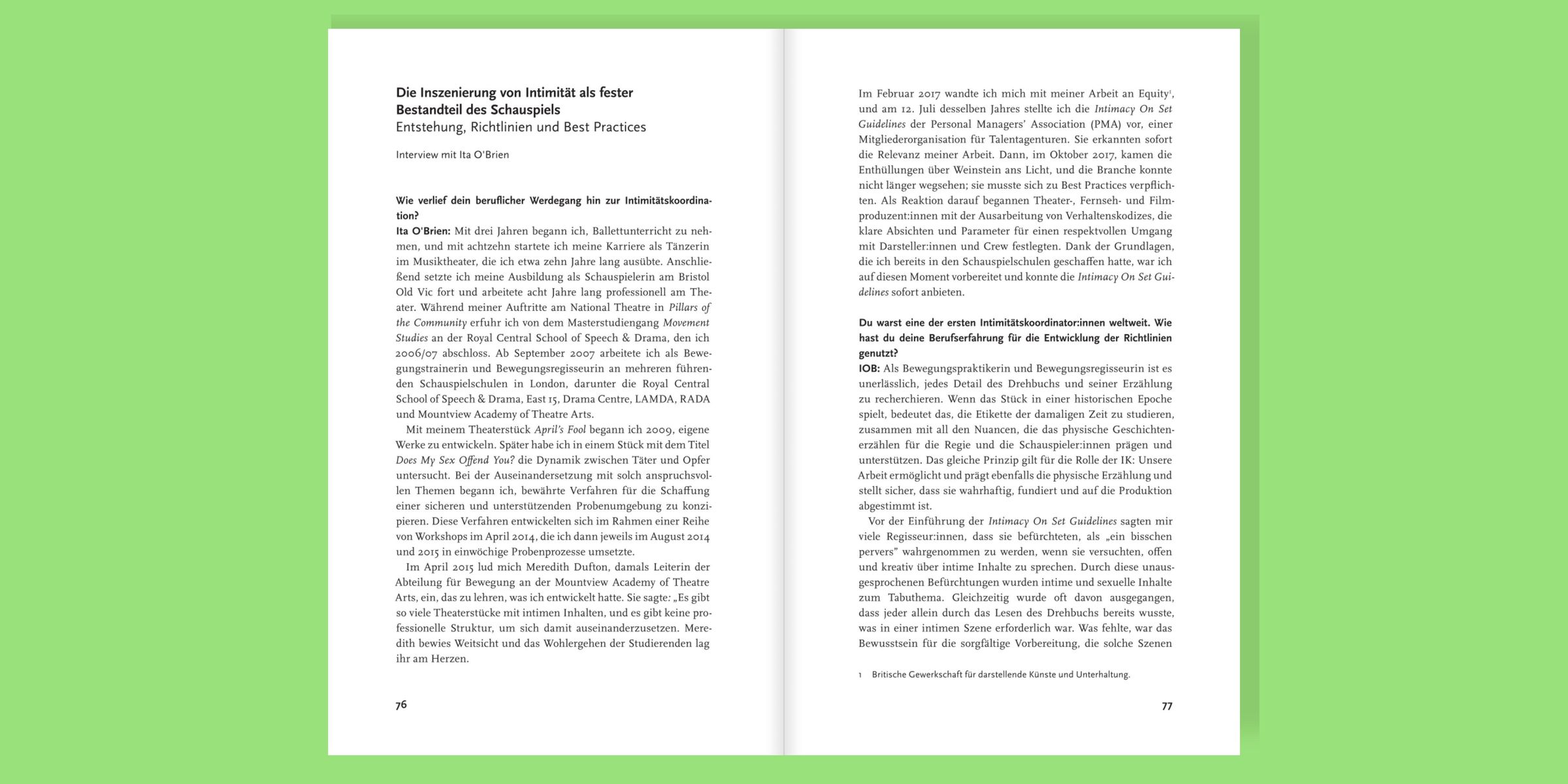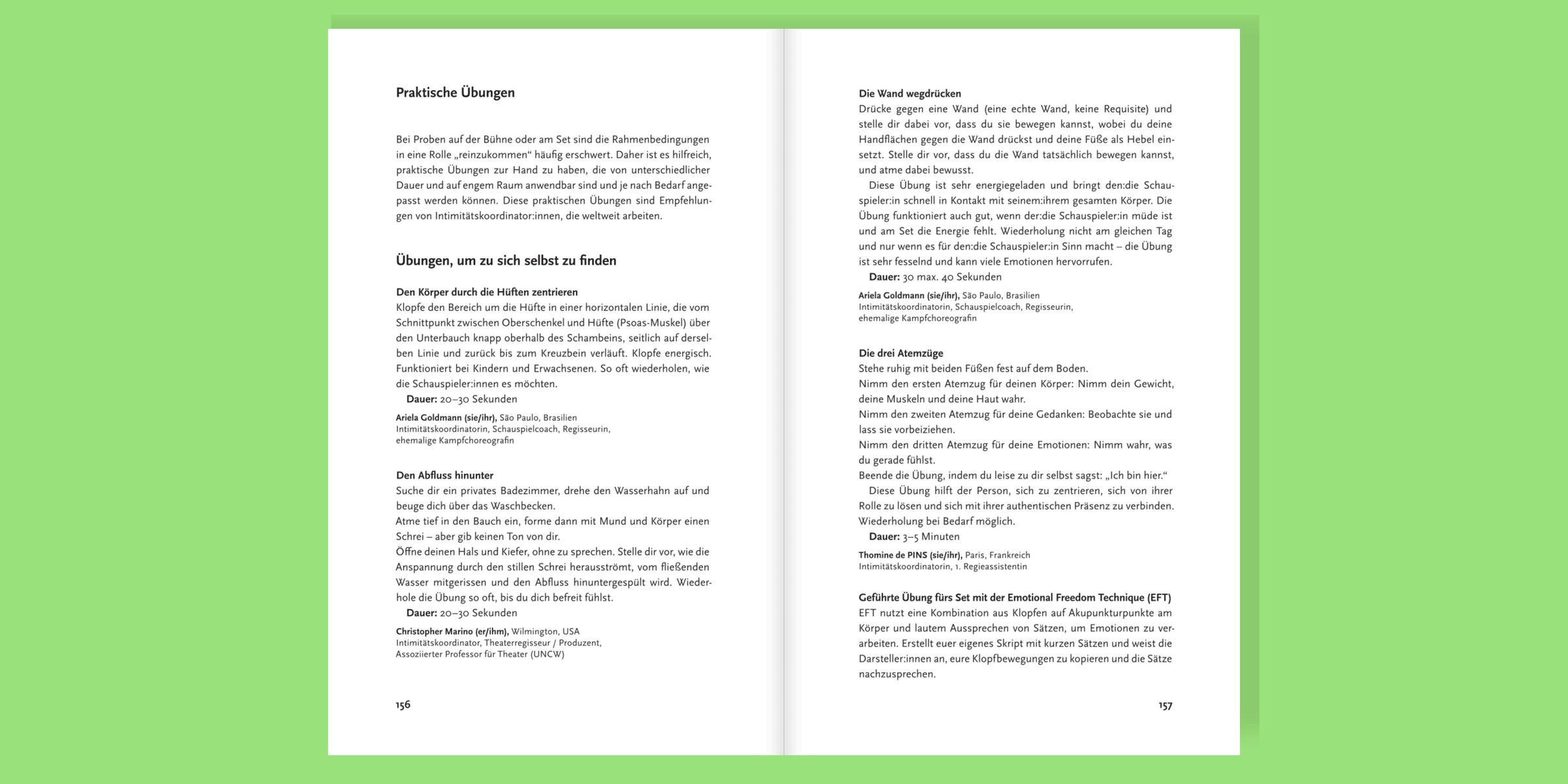 Mit der Intimitätskoordination hat sich in den vergangenen Jahren ein neuer Beruf entwickelt, dessen Ziel es ist, Film- und Bühnenproduktionen bei der Inszenierung intimer Szenen zu unterstützen und die übereinstimmende Zusammenarbeit aller Beteiligten zu gewährleisten. Dabei ist die Mitarbeit an der künstlerischen Vision der Produktionen fester Bestandteil des Berufsbildes. Während auf den Sets in den USA und Großbritannien längst mit Intimitätskoordinator: innen gearbeitet wird, steckt ihre Integration hierzulande jedoch in den Anfängen. Dieser Ratgeber beleuchtet erstmals die Entwicklung des Berufes im deutschsprachigen Raum und zeigt seine Vorteile auf. Er führt in die Grundlagen und Methoden der Intimitätskoordination ein und beantwortet zentrale Fragen: Wann und warum sollte mit Intimitätskoordinator: innen gearbeitet werden? Wie gestaltet sich die Arbeitsweise? Welche Methoden und Techniken kommen in der Praxis zum Einsatz? Mit welchen Gewerken wird wie zusammengearbeitet? Welche Unterschiede bestehen zwischen Film und Bühne? Wie ist die Ausbildung von Intimitätskoordinator: innen organisiert?