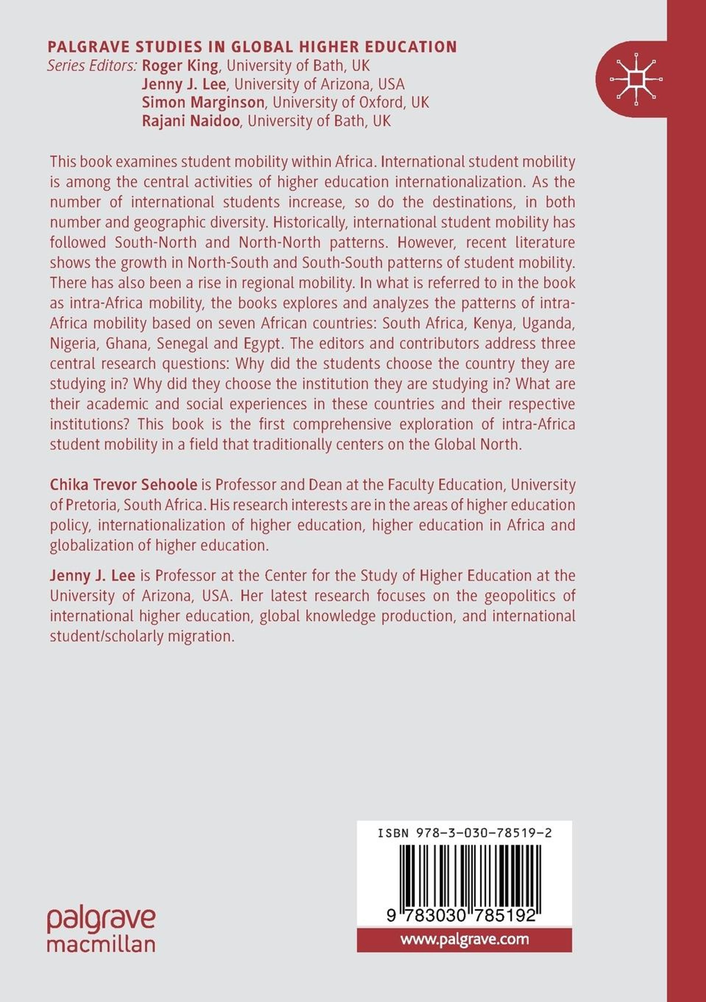 This book examines student mobility within Africa. International student mobility is among the central activities of higher education internationalization. As the number of international students increase, so do the destinations, in both number and geographic diversity. Historically, international student mobility has followed South-North and North-North patterns. However, recent literature show the growth in North-South and South-South patterns of student mobility. There has also been a rise in regional mobility. In what is referred to in the book as intra-Africa mobility, the books explores and analyzes the patterns of intra-Africa mobility based on seven African countries: South Africa, Kenya, Uganda, Nigeria, Ghana, Senegal and Egypt. The editors and contributors address