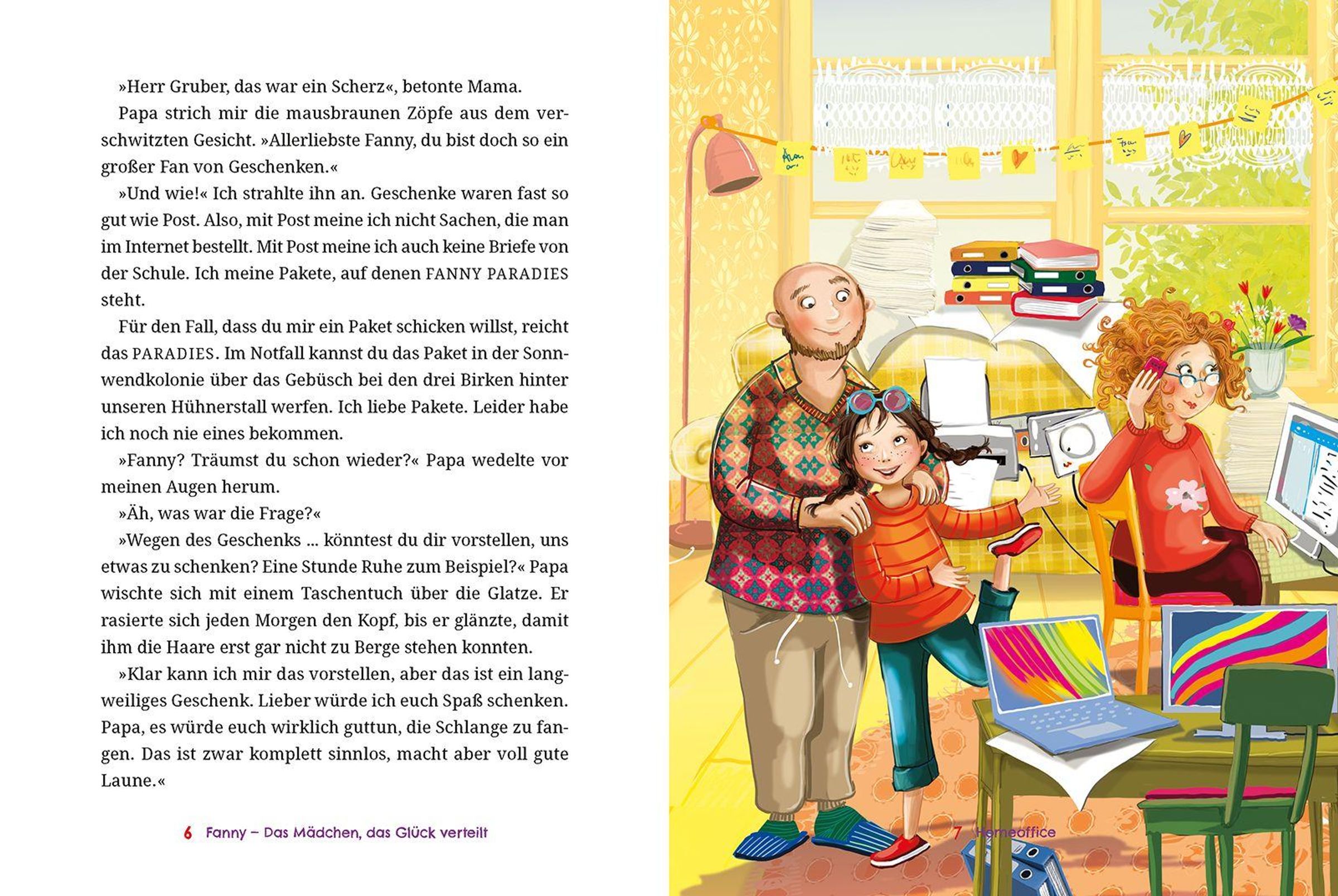 Eines Tages landet ein lila Paket im Garten, dessen Anschrift von der langen Reise völlig unlesbar geworden ist. Fanny trägt es von Haustür zu Haustür und trifft dabei auf die unterschiedlichsten Menschen in der Sonnwendkolonie. Dabei erfährt sie allerhand kleine und große Geheimnisse - und sie entdeckt, dass der Verwalter der Kolonie finstere Pläne für das alte Postamt hat, die unbedingt gestoppt werden müssen!