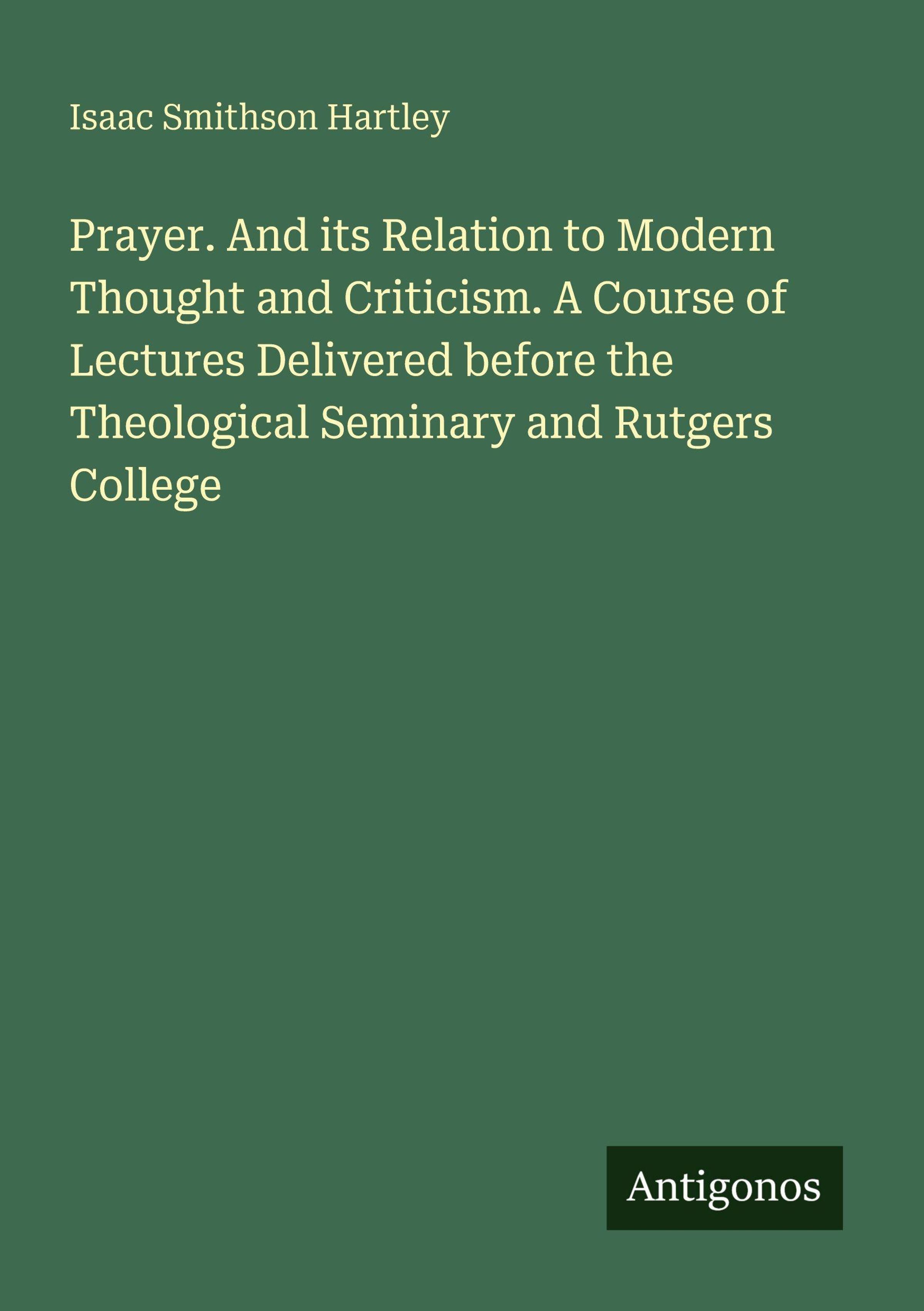 Isaac Smithson Hartley: Prayer. And its Relation to Modern Thought and Criticism. A Course of Lectures Delivered..., Kartoniert / Broschiert