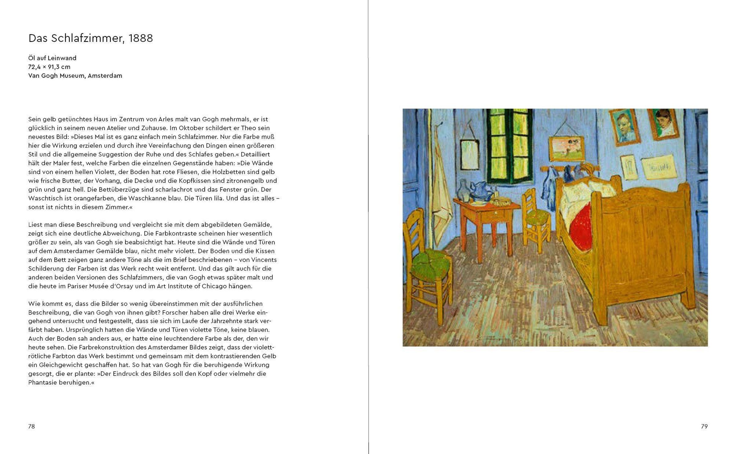 Anhand von frühen Studien und Gemälden zum Bauernleben in Holland bis hin zu van Goghs leuchtenden Sonnenblumen zeichnet dieses Buch den kreativen Werdegang des Ausnahmekünstlers nach. Fünfundfünfzig sorgfältig reproduzierte Werke zeigen, wie van Gogh das Spiel von Licht und Farbe und die Umsetzung in Bewegung auf der Bildfläche perfektionierte. Thematisch gegliedert, werden viele seiner berühmtesten Werke behandelt, darunter Die Sternennacht , Die Kartoffelesser , Caféterrasse am Abend , Schwertlilien , Sonnenblumen und drei seiner charakteristischen Selbstporträts. Kurze Texte erläutern die Hintergründe, Inspirationsquellen und Einflüsse, die van Goghs künstlerische Genese geprägt haben. Sei es die stille Schönheit von Arles, die Stadt, in der der Künstler eine seiner produktivsten Zeiten erlebte, oder die urbane Energie einer Straße, die er malerisch einfängt: jedes Gemälde spiegelt van Goghs unverwechselbare emotionale Tiefe wider. Dieses Buch ist für alle geeignet, die den Maler schon lange bewundern oder ihn neu entdecken möchten. Es bietet faszinierende Einblicke in das Leben und Schaffen van Goghs, eine der prägendsten Persönlichkeiten der modernen Kunst. Große Meister der Kunst ist die ideale Reihe, um in die Werke der einflussreichsten Künstler*innen einzutauchen.