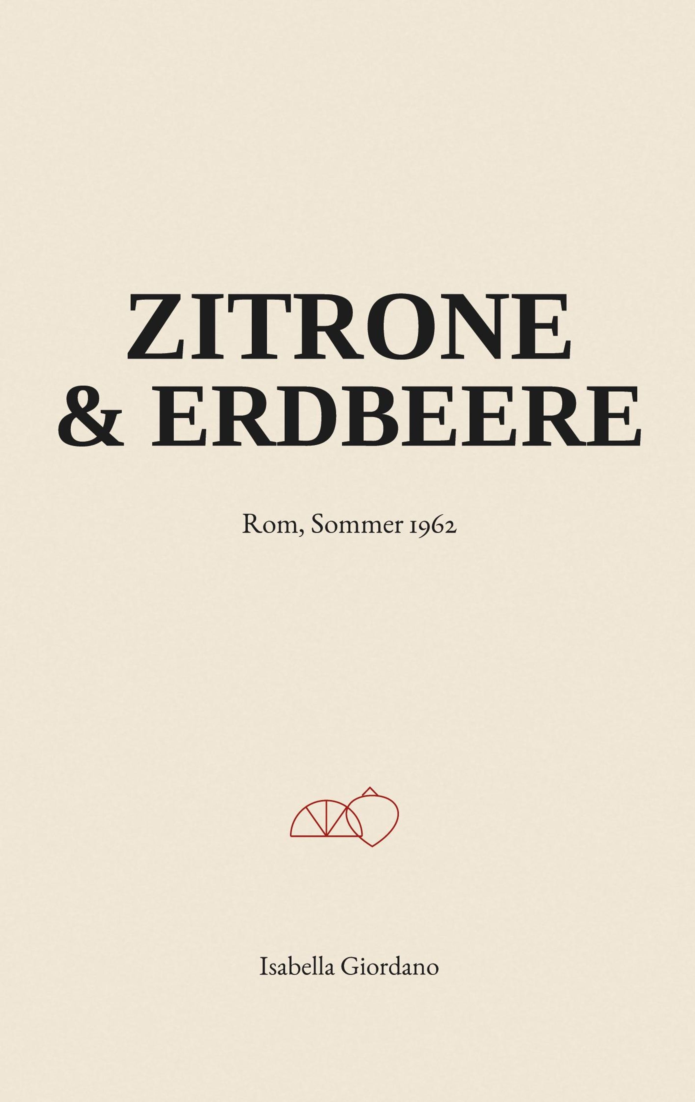 „Zitrone & Erdbeere“, „Rom, Sommer 1962“, „Isabella Giordano“. Illustration einer Zitrone und Erdbeere in Rot., Buch