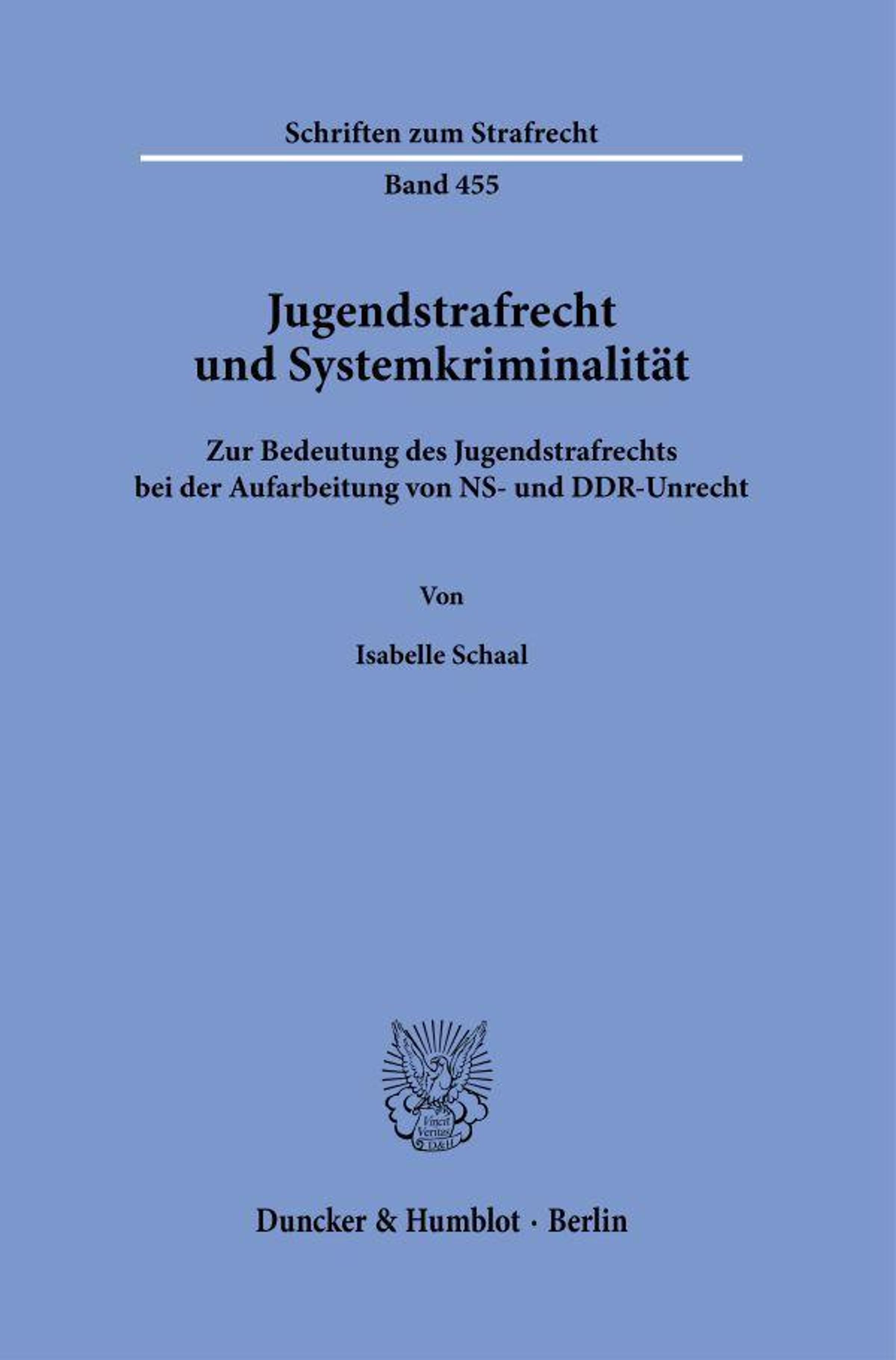 'Juvenile Criminal Law and System Crimality. On the Significance of Juvenile Justice in Dealing with National Socialist and GDR Crimes': Trials against elderly Nazi perpetrators in recent years have highlighted the tension between applying the pedagogically oriented juvenile criminal law and adjudicating the gravest offenses. In the last century, German courts faced this very tension on two occasions. This study examines the role juvenile criminal law has played in coming to terms with Nazi and GDR crimes and explores how the legislature and the courts have managed the resulting conflicts of objectives.