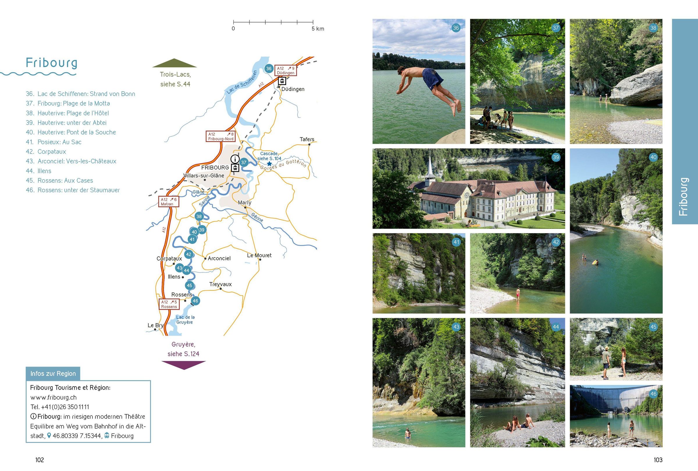 Dieses Buch zeigt Abenteurerinnen, Wasserratten und Geniesser jeden Alters spektakulär schöne Orte am Wasser in der französischsprachigen Schweiz. Darunter sind viele, die kaum jemand kennt. 100 Badeplätze mit lauschigen Stränden, jadegrünen Flussbecken, dramatischen Felswänden und stiebenden Wasserfällen werden in Bild und Text präsentiert. Sie sind alle in höchstens einer Stunde zu Fuss ab ÖV-Haltestelle oder Parkplatz erreichbar. Dank Karten, Koordinaten und genauen Beschreibungen des Zugangs erreicht man sie auf dem einfachsten Weg. Viele Tipps zur Sicherheit und Hinweise auf gemütliche Gartenrestaurants komplettieren den Führer. Das Buch ist auch auf Französisch erhältlich (ISBN 978-3-907267-06-6).
