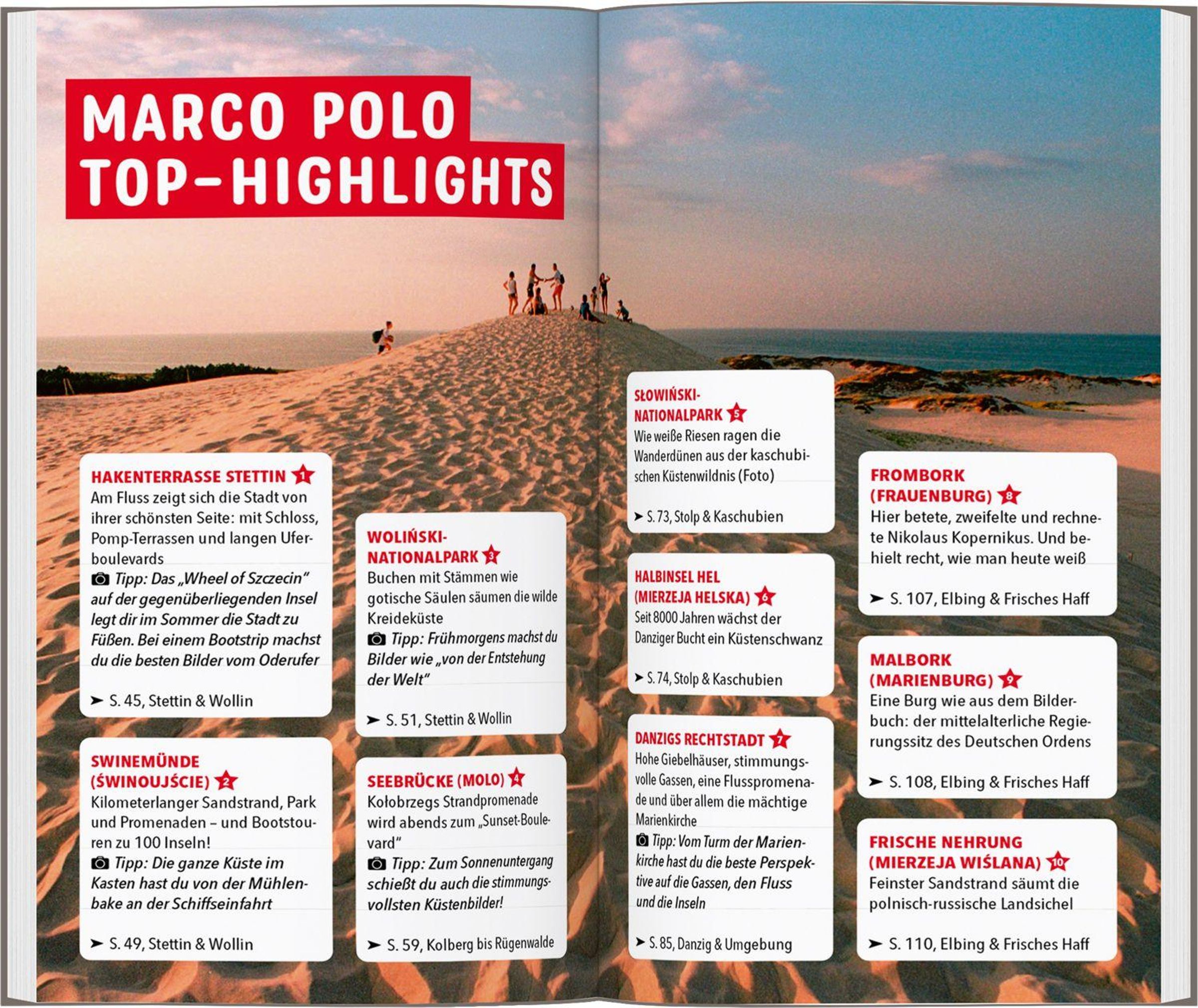 Ob Aktivurlaub in der Natur oder Städtetrip mit Kultur- und Architekturgenuss - die Region zwischen Stettin und Weichsel-Delta bietet für jeden das Passende. Begib dich im Wolliner Nationalpark auf die Suche nach brütenden Seeadlerpaaren, blicke vom Turm der Marienkirche über Danzigs Giebeldächer oder stürze dich im Surferparadies der Halbinsel Hel in die Wellen. Mit dem MARCO POLO Reiseführer für die polnische Ostseeküste stehen dir alle Möglichkeiten offen. Lass dich zu deinem Traumurlaub inspirieren!
