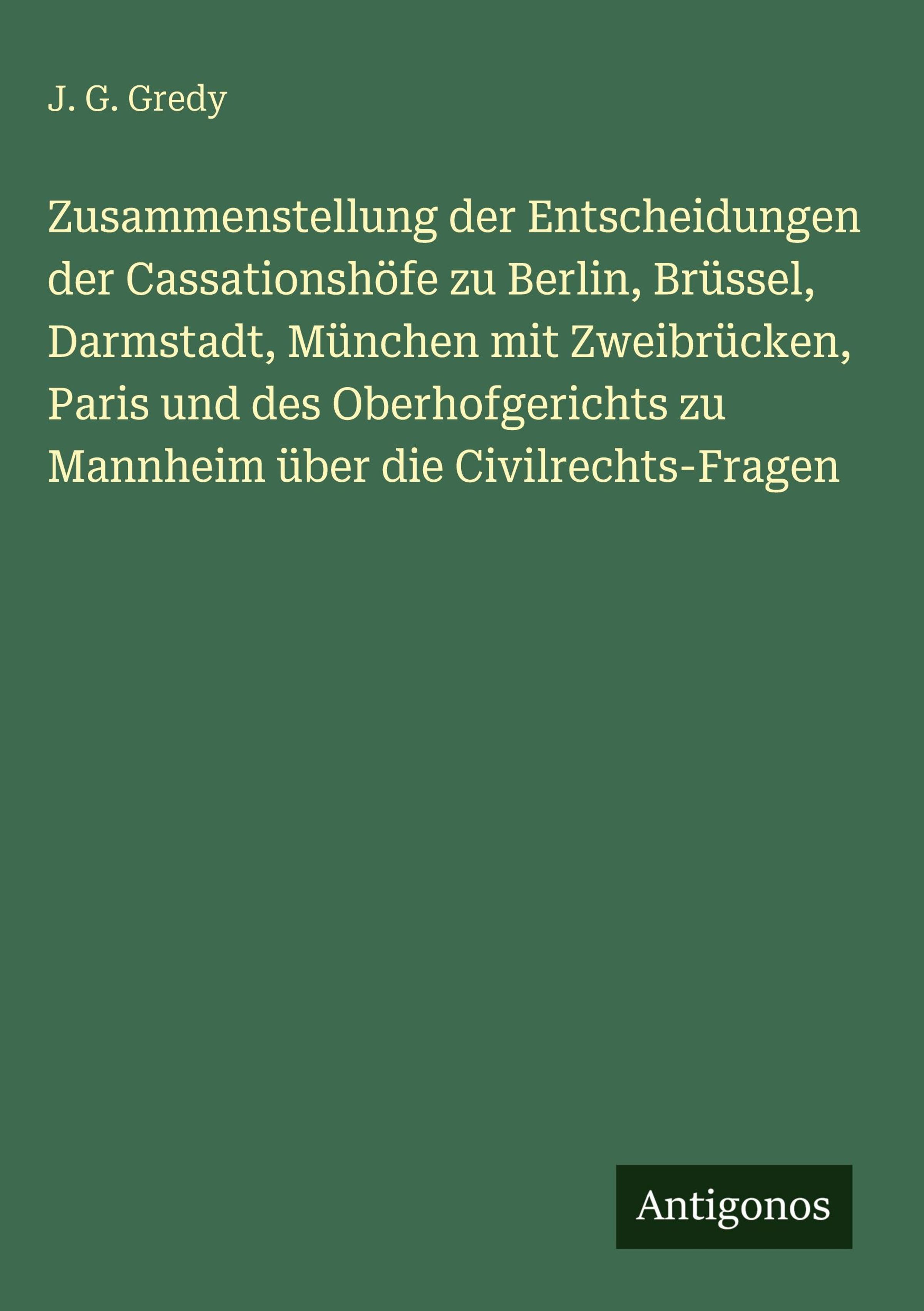 J. G. Gredy: Zusammenstellung der Entscheidungen der Cassationshöfe zu Berlin, Brüssel, Darmstadt, München mit..., Gebunden