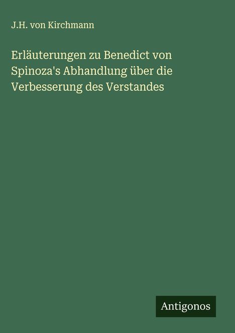 J. H. Von Kirchmann: Erläuterungen zu Benedict von Spinoza's Abhandlung über die Verbesserung des Verstandes, Gebunden