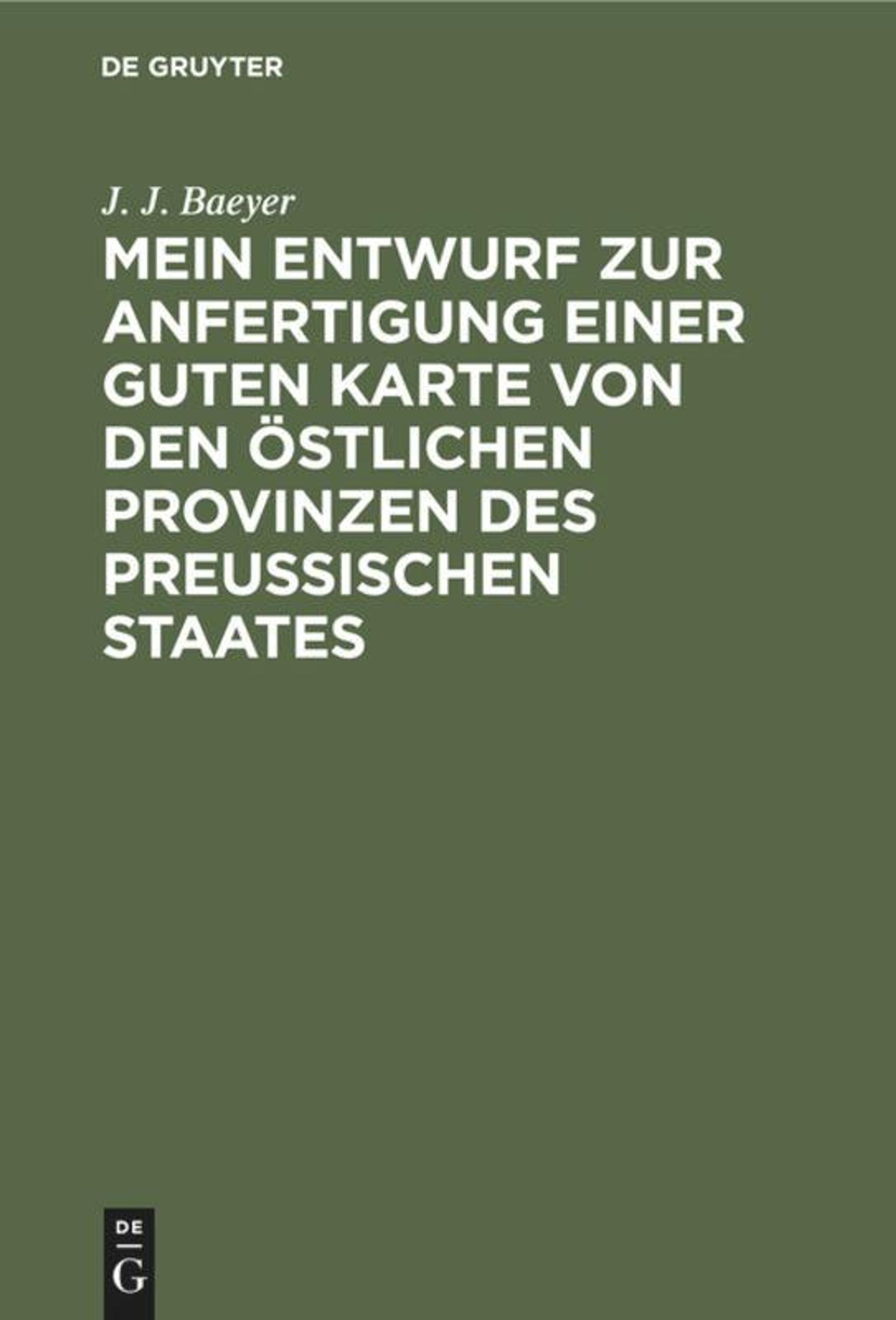 Frontmatter -- Vorwort -- Inhalts - Verzeichniss -- Entwurf zur Anfertigung einer guten Karte von den östlichen Provinzen des Preussischen Staates nach dem heutigen Standpunkt der Wissenschaft und Technik. (Vorwort von 1856.) -- Allgemeiner Gesichtspunkt einer Landesaufnahme -- Grundlage einer Landesaufnahme nach dem jetzigen Standpunkte der Wissenschaft -- Ueber den Nutzen einer guten Landes- oder Kataster-Vermessung -- Verschiedene Methoden des Messens und Fehlerhaftigkeit derselben -- Organisation einer Landes-Vermessung -- Ausbildung und Torbereitung zu dem Geschäft -- Geschäftskreis der Landes -Vermessung -- Motivirung der verschiedenen Maassstäbe -- Allgemeine Bemerkungen -- Heransgabe der Specialkarte im Maassstabe von '/00000 -- Kostenberechnung für die Aufnahme der östlichen Provinzen des Staates -- An Se. Majestät den König über des General-Major Baeyer "Entwurf zur Anfertigung einer guten Karte von den östlichen Provinzen des Preussischen Staates nach dem heutigen Standpunkte der Wissenschaft und Technik" erstattetes Gutachten von Alexander von Humboldt -- Verschiedene Gutachten über den Entwurf -- Ernennung einer staatsministeriellen Commission -- Auszüge aus den Jahresberichten des Dirigenten der Sehwarzburgischen Landesvermessung Herrn Oberforstmeisters Michael -- Motivirtes Gutachten der vom Königlichen Staats-Ministerium in Folge der Allerhöchsten Cabinets-Ordre vom 9. Februar 1854 unterm 4. Juni 1856 niedergesetzten Commission zur Berathung der Generallieutenant Baeyerschen Denkschrift über die Anfertigung einer guten Karte von den sechs östlichen Provinzen des Preussischen Staats nach dem gegenwärtigen Standpunkte der Wissenschaft, d. d. Berlin den 2. December 1851 -- Anschlag der Kosten für die innerhalb 10 Jahren auszuführende Triangulation der östlichen Provinzen des Preussischen Staats -- Bemerkungen zu dem Gutachten -- Bericht des K. Staatsministeriums an des Königs Majestät -- Allerhöchste Cabinetsordre -- Meine obere Leitung und Controlle -- Ergebnisse meiner Controlle -- Bedürfniss eines permanenten Vermessungs-Institutes -- Vorschlag zu einem Längenbüreau