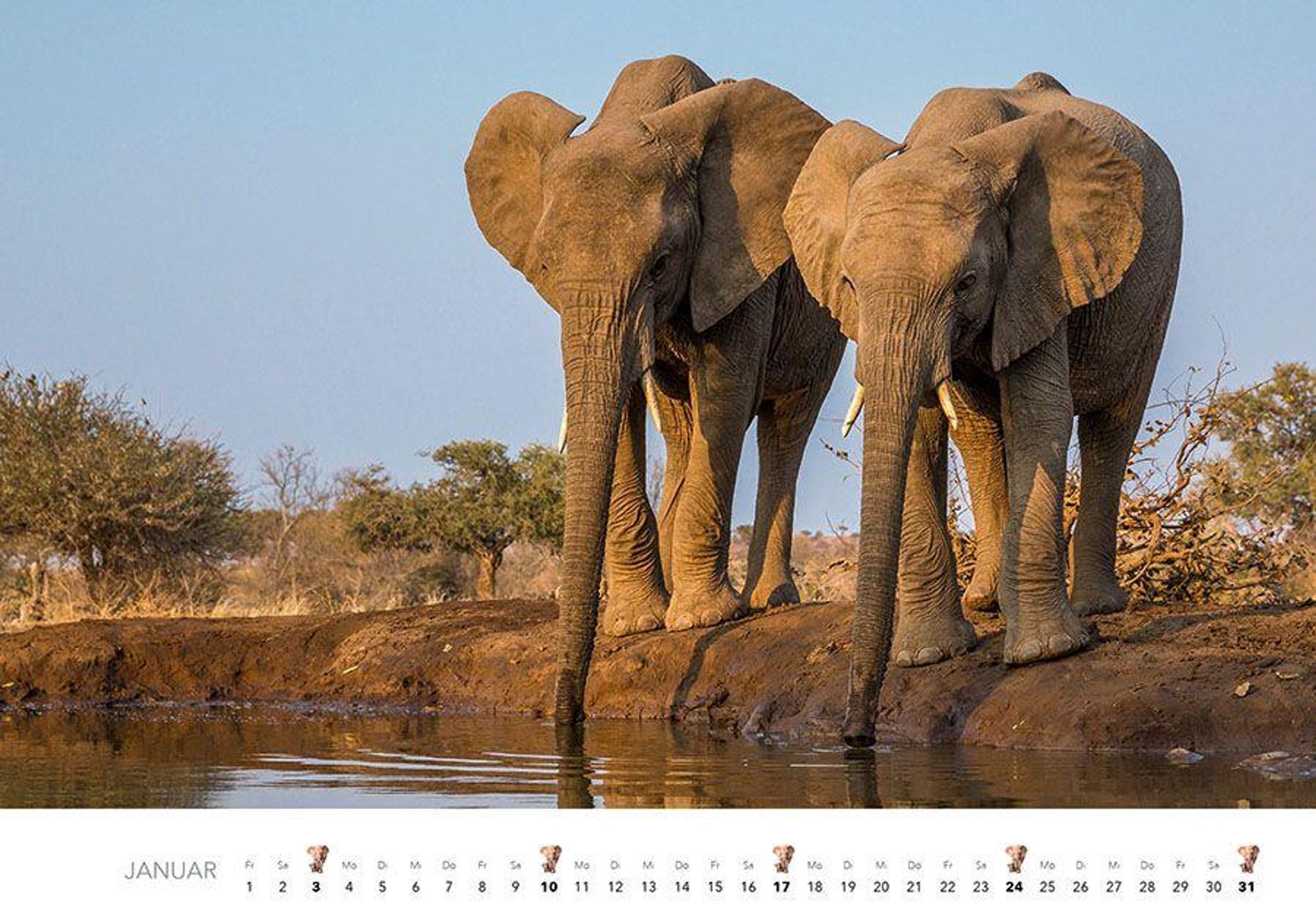 Dieser tolle Wandkalender im großen Posterformat ist genau das Richtige für kleine und große Elefantenfans. 12 spektakulären Aufnahmen voller Kraft, wunderschön fotografiert vor einer grandiosen Landschaft sind der perfekte Jahresbegleiter für alle Elefantenfans. Die einfühlsamen Fotografien zeigen die sanften Riesen ganz nah in ihrem natürlichen Lebensraum. Die hochwertigen, großformatigen Kalenderblätter eignen sich auch perfekt zum Rahmen. Für Elefantenfans ist dieser Kalender einfach ein Muss! Mit großem Wandplaner für den perfekten Jahresüberblick. Hochwertige Ausstattung: - 14 Seiten Kunstdruckpapier - Cover mit Glanzlack veredelt - extra stabile Rückwand - silberne Spiralbindung - nachhaltig produziert.