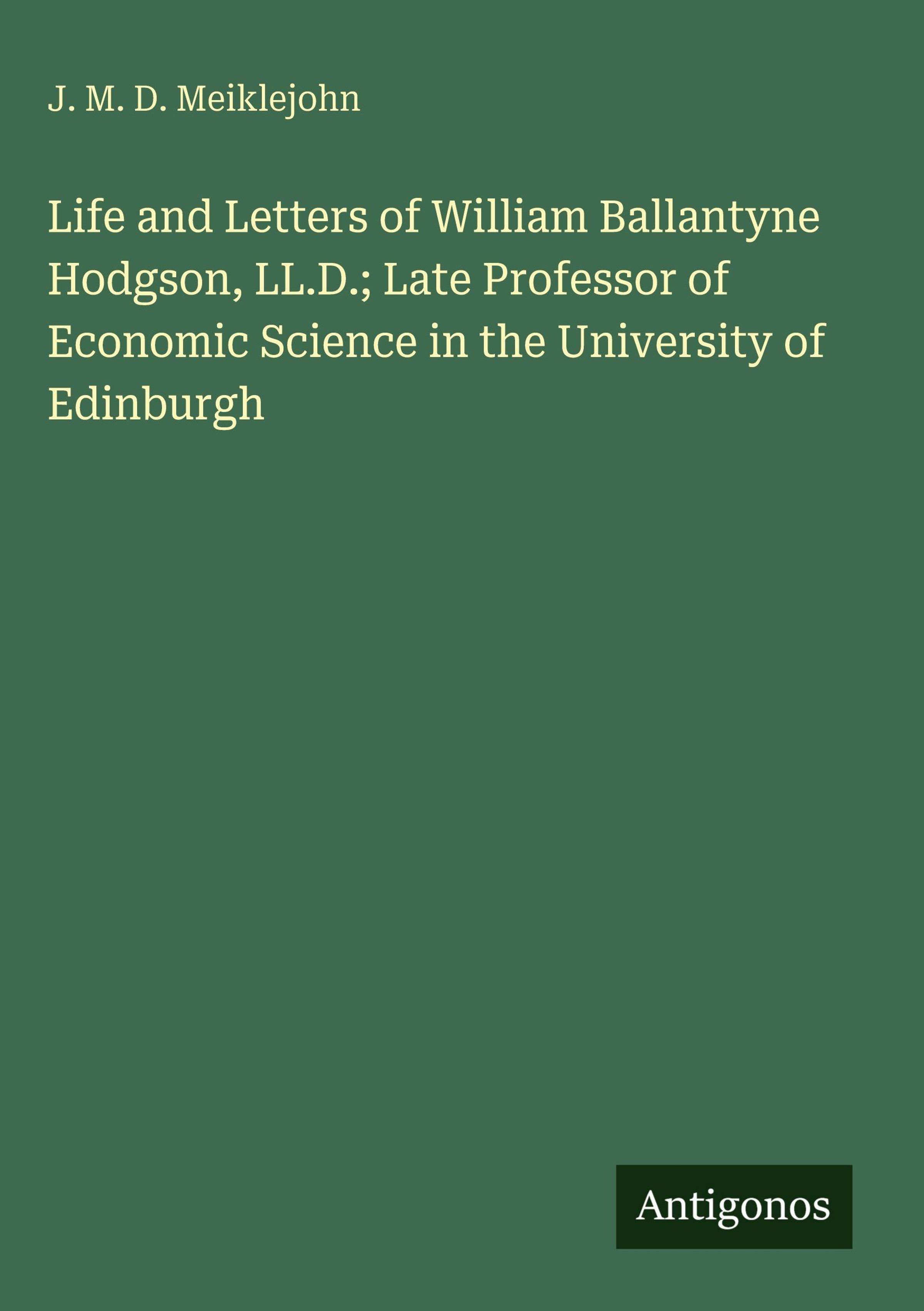 J. M. D. Meiklejohn: Life and Letters of William Ballantyne Hodgson, LL.D.; Late Professor of Economic Science..., Gebunden