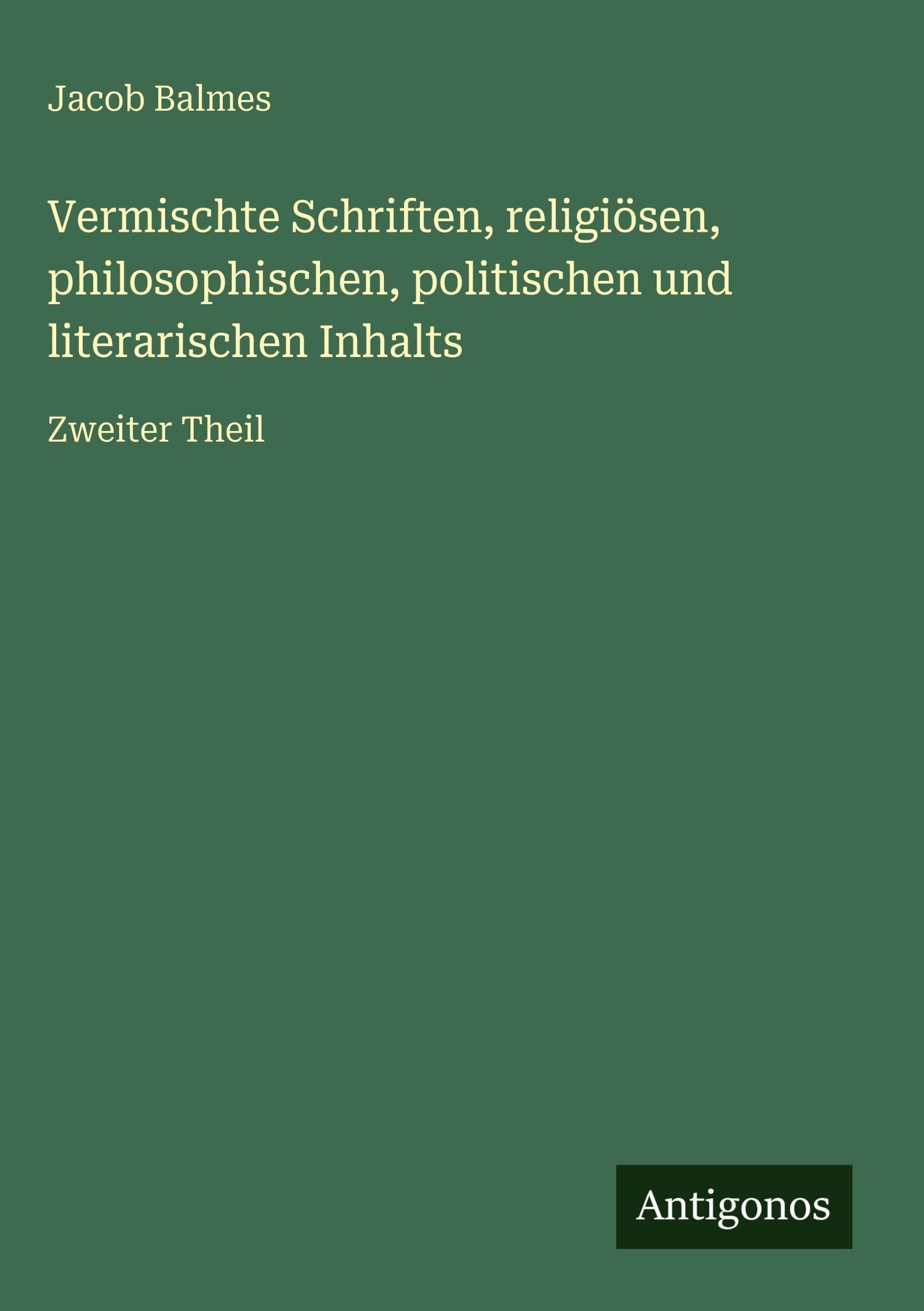 Jacob Balmes: Vermischte Schriften, religiösen, philosophischen, politischen und literarischen Inhalts, Gebunden