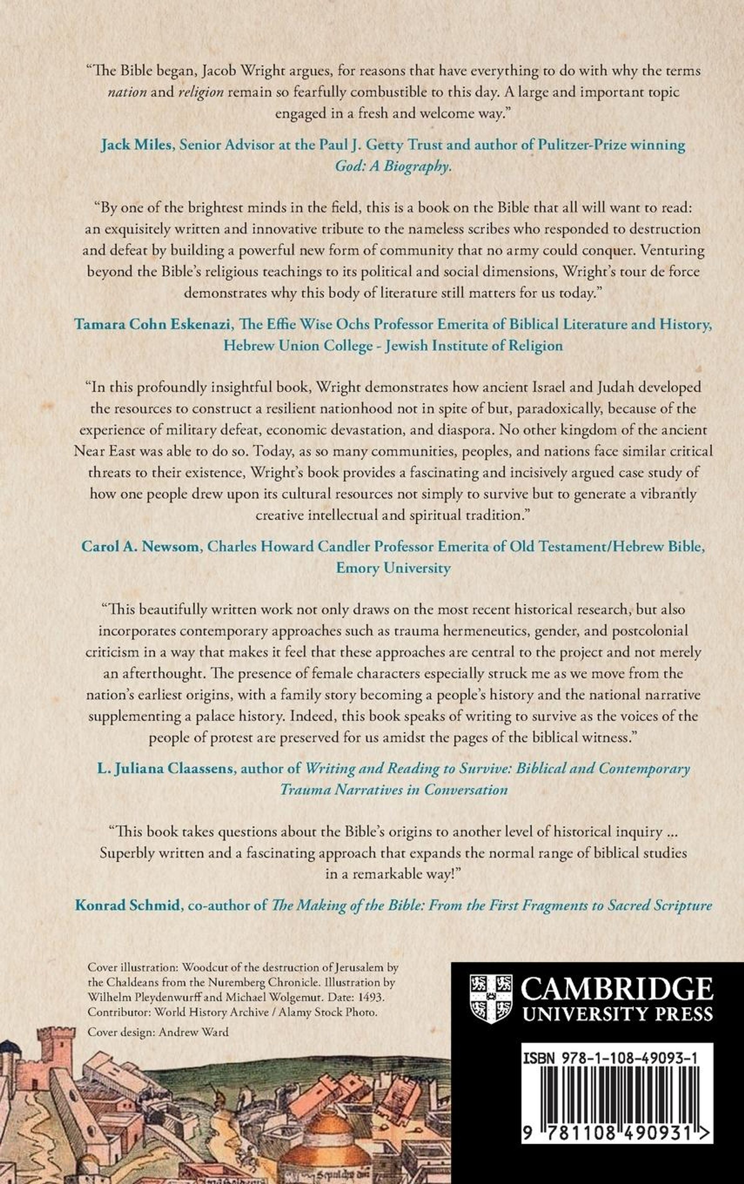 Demonstrating how the Old Testament or Hebrew Bible represents the first, and one of the most elaborate, projects of 'peoplehood,' Wright tells the dramatic story of the Bible's origins in relation to 1) a longstanding political division between North and South (Israel and Judah) and 2) the traumatic experience of defeat.