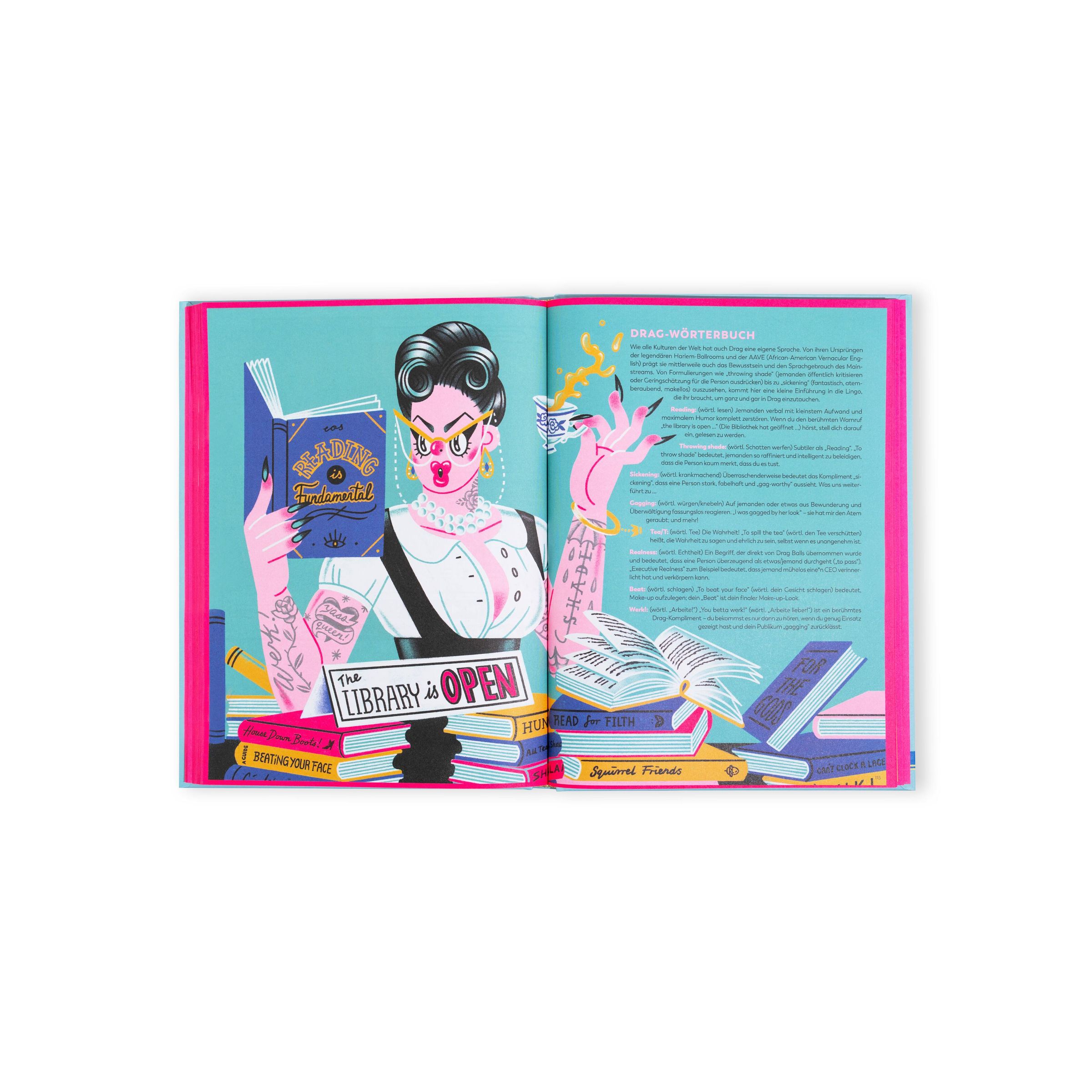 Dieser üppig illustrierte Leitfaden wirft einen Blick auf das kulturelle Phänomen Drag - vom antiken Theater bis zu den Queens der Hitsendung "RuPaul's Drag Race".