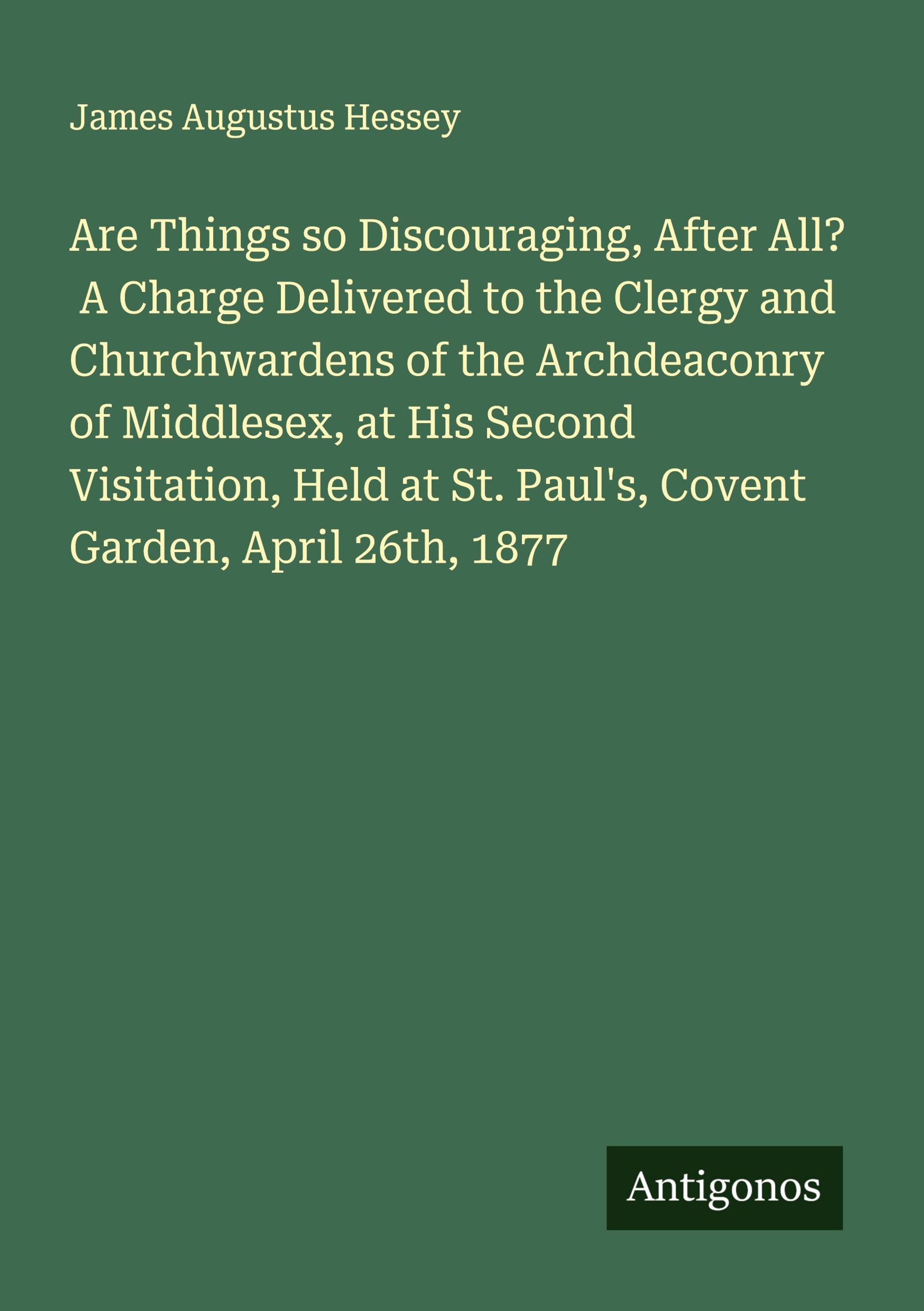 Are Things so Discouraging, After All? A Charge Delivered to the Clergy and Churchwardens of the Archdeaconry of Middlesex, at His Second Visitation, Held at St. Paul's, Covent Garden, April 26th, 1877