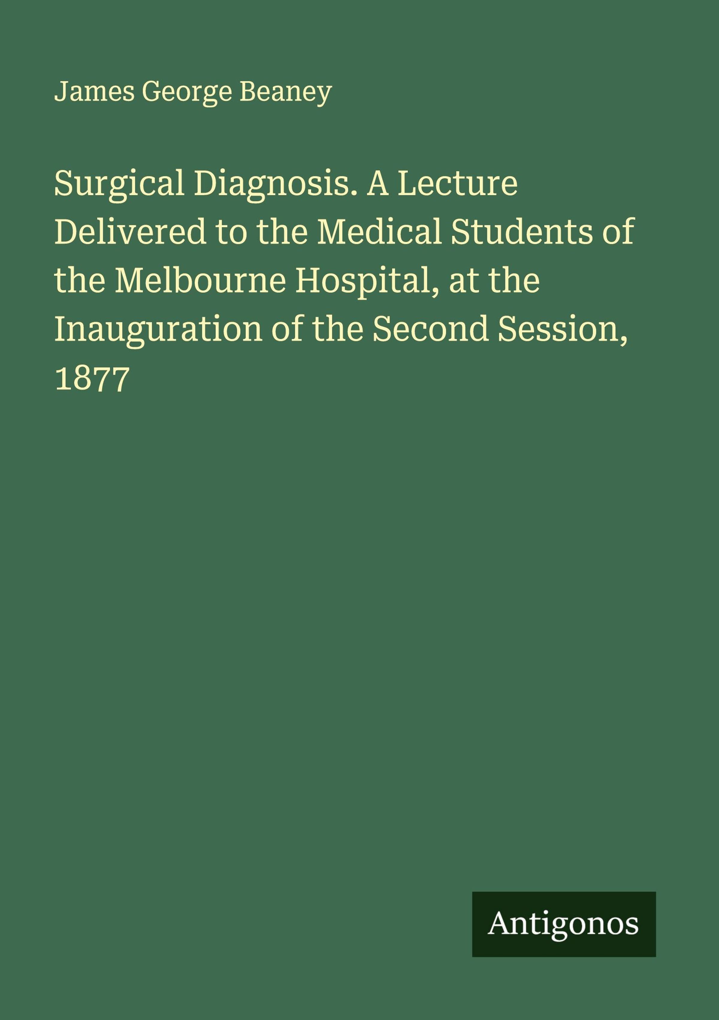 Surgical Diagnosis. A Lecture Delivered to the Medical Students of the Melbourne Hospital, at the Inauguration of the Second Session, 1877