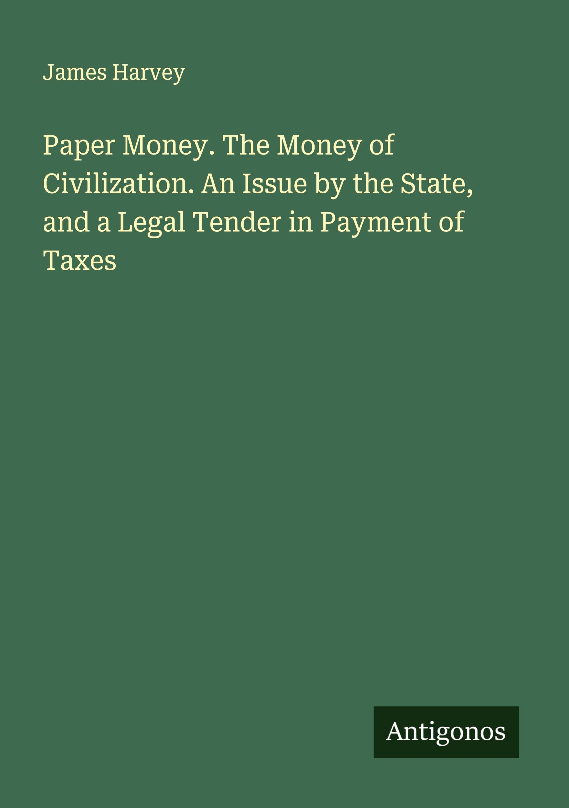 James Harvey: Paper Money. The Money of Civilization. An Issue by the State, and a Legal Tender in Payment of Taxes, Kartoniert / Broschiert