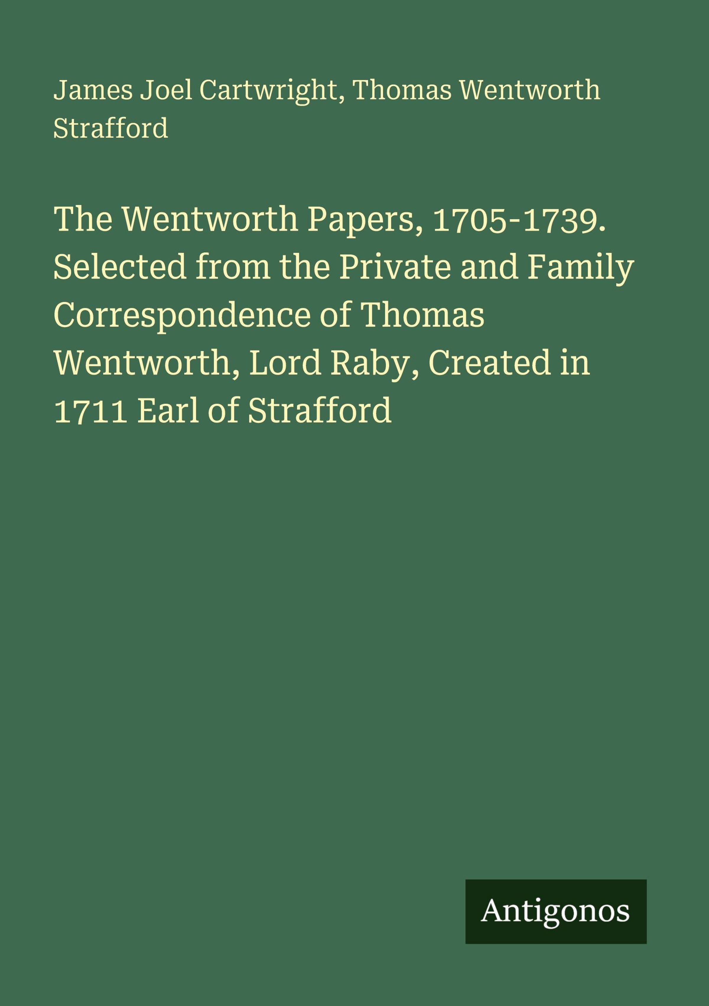 The Wentworth Papers, 1705-1739. Selected from the Private and Family Correspondence of Thomas Wentworth, Lord Raby, Created in 1711 Earl of Strafford