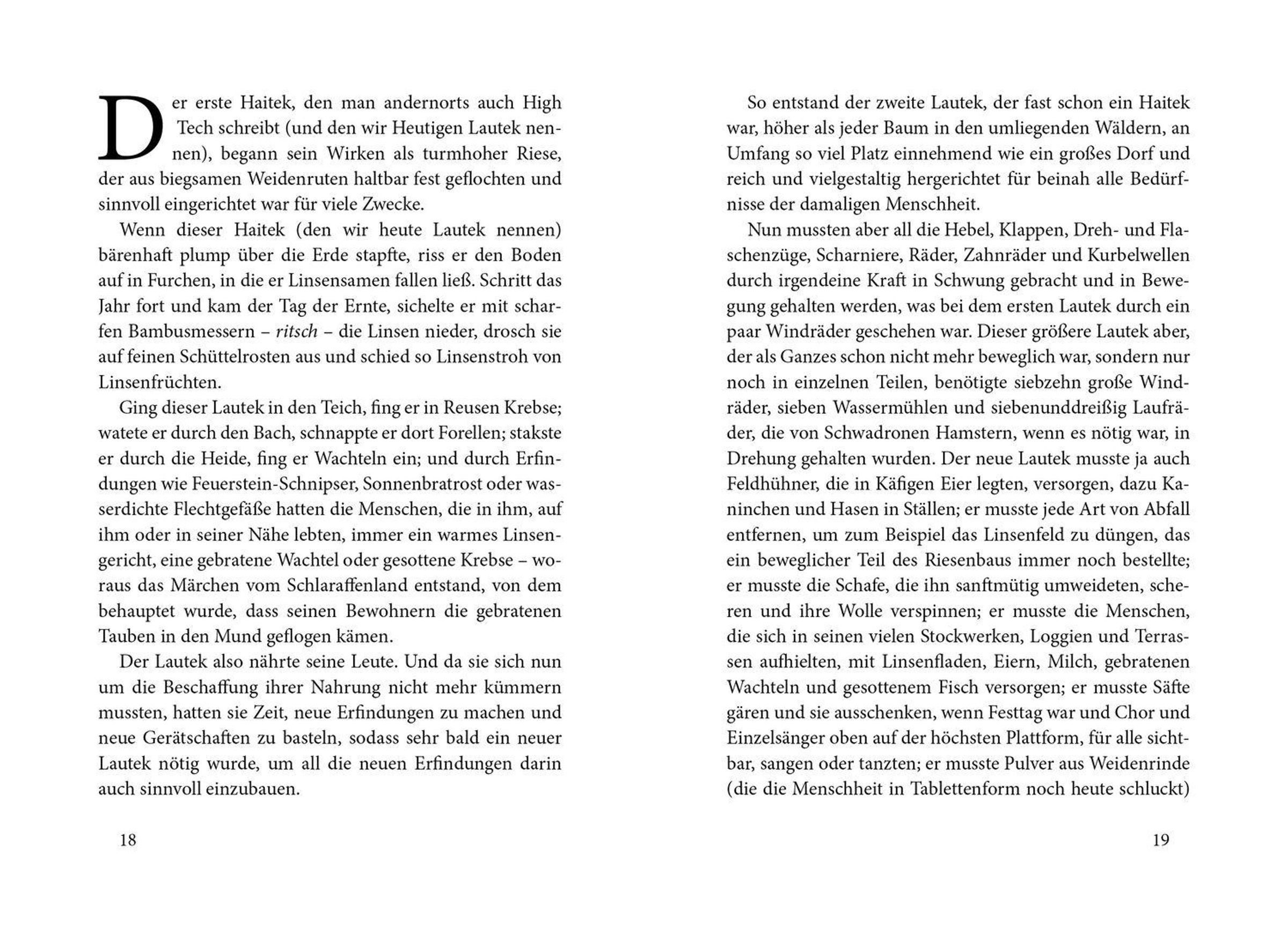 Wir feiern den 100. Geburtstag von James Krüss mit bisher unveröffentlichtem Material: In dieser mit spitzer Feder verfassten Kritik am Fortschrittswahn hält Krüss uns als Gesellschaft den Spiegel vor. In sieben Kapiteln, die aus Gedichten und Prosatexten bestehen, erzählt James Krüss von den "Haiteks", Turmbau-zu-Babel-artigen Riesenstädten, die mit jedem Kapitel der Menschheit fortschrittlicher werden. Eine prophetische, mit scharfer Beobachtungsgabe verfasste Abhandlung über die Entwicklung der Menschheit in den verschiedenen Zeitaltern - bis hin zu ihrem unvermeidlichen Untergang.