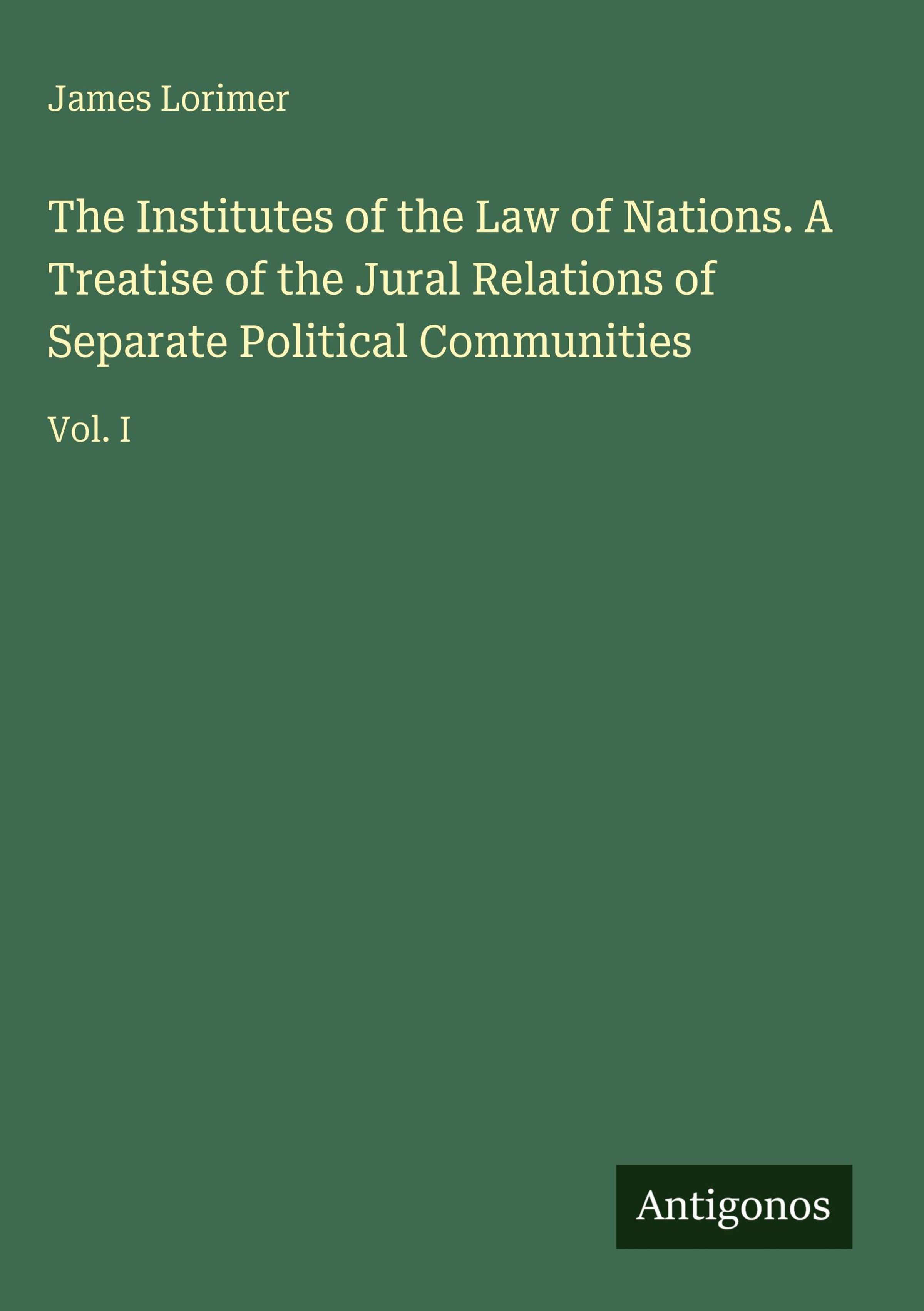 The Institutes of the Law of Nations. A Treatise of the Jural Relations of Separate Political Communities