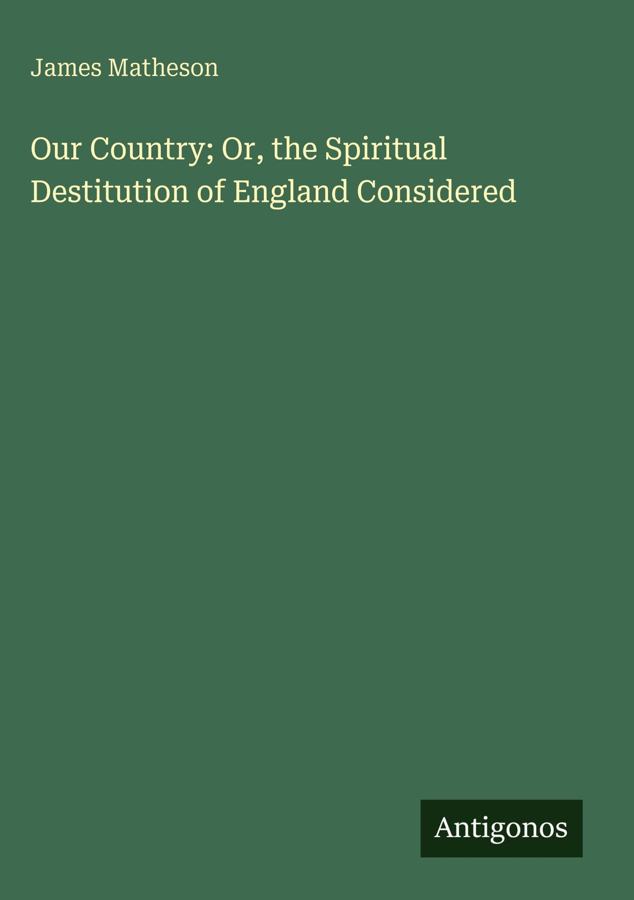 James Matheson: Our Country; Or, the Spiritual Destitution of England Considered, Gebunden