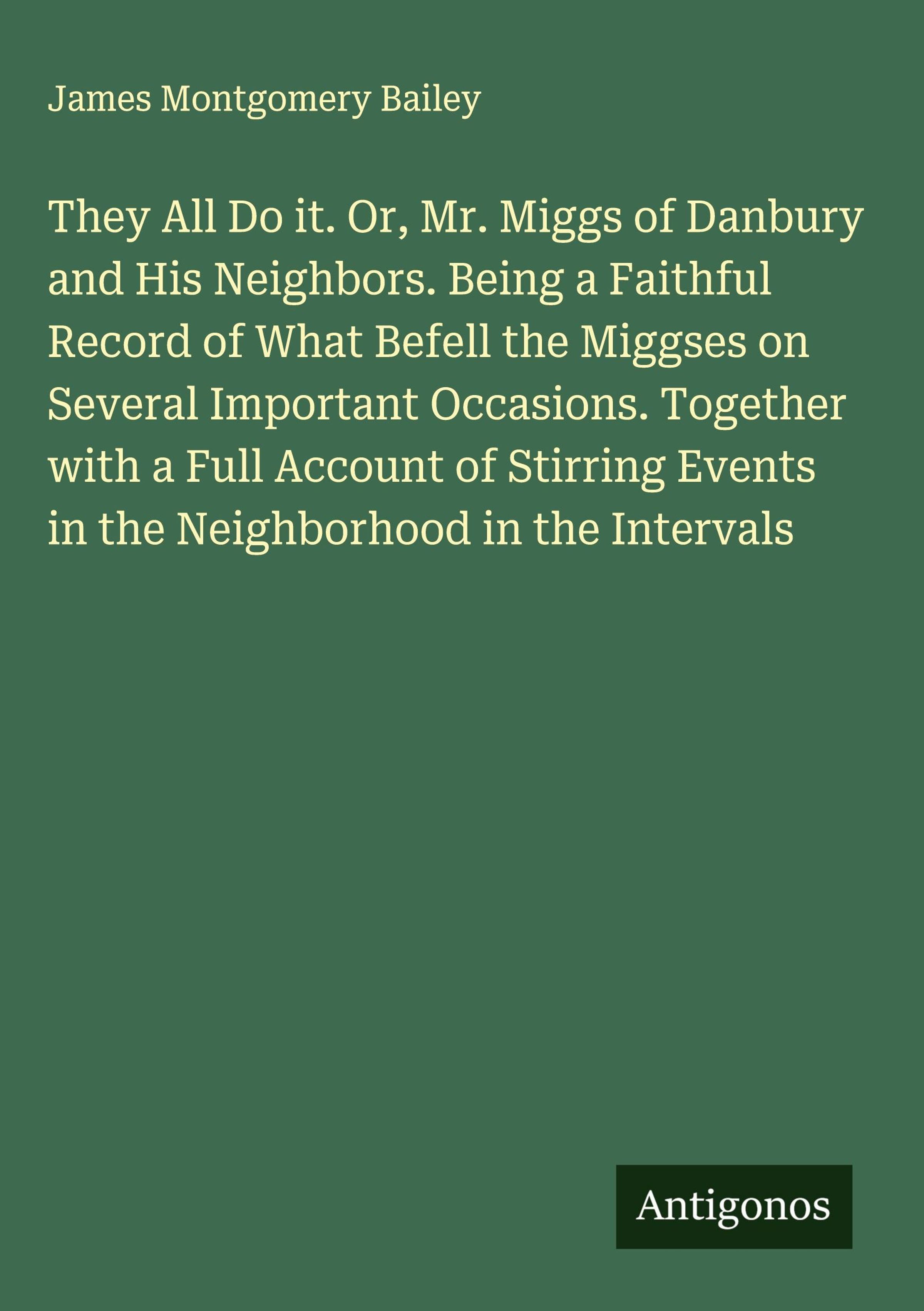 James Montgomery Bailey: They All Do it. Or, Mr. Miggs of Danbury and His Neighbors. Being a Faithful Record of..., Gebunden