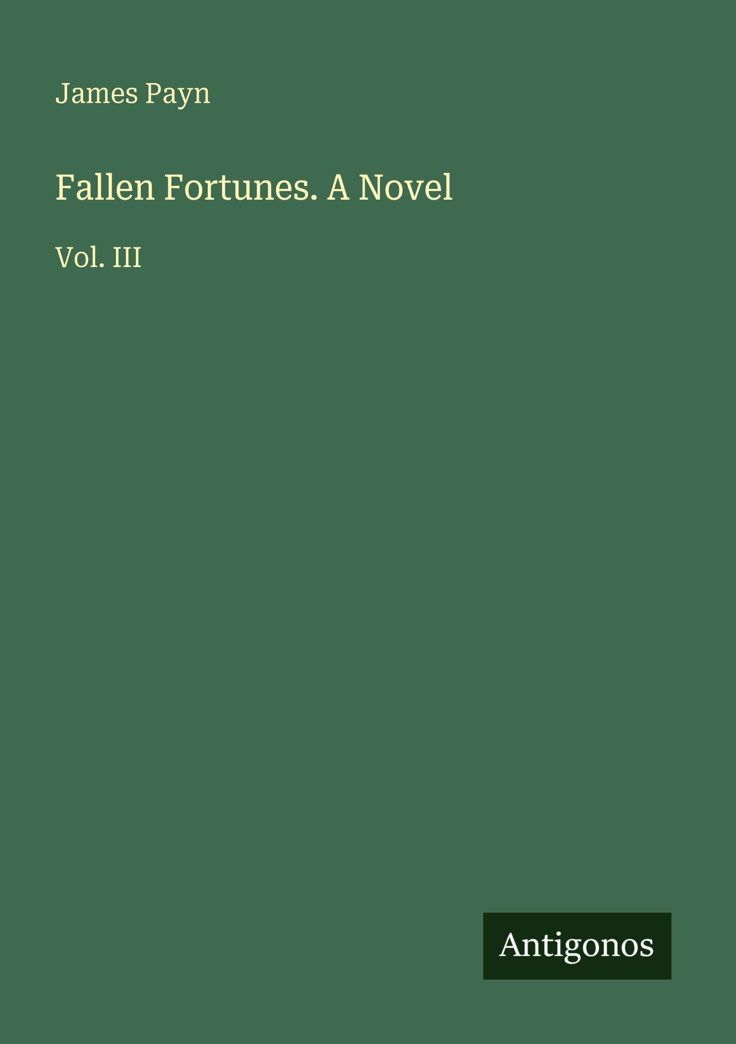 "Fallen Fortunes. A Novel, Vol. III" von James Payn. Unten rechts steht "Antigonos". Der Hintergrund ist dunkelgrün., Buch