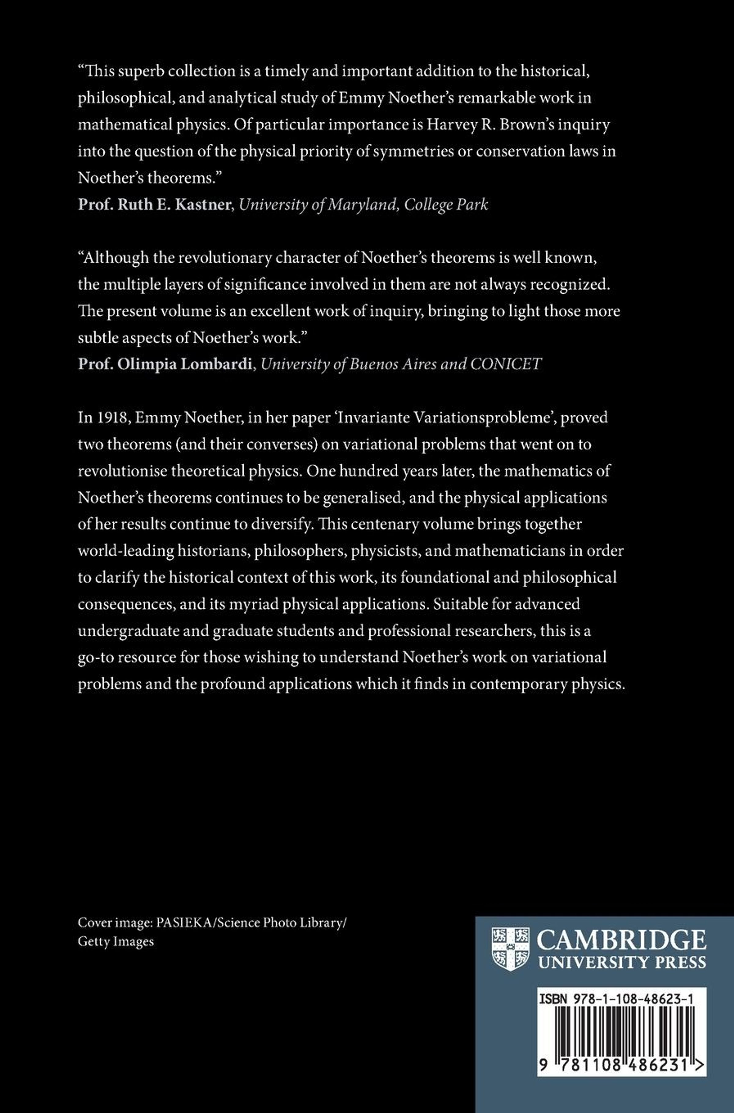 In 1918, Emmy Noether, in her paper Invariante Variationsprobleme, proved two theorems (and their converses) on variational problems that went on to revolutionise theoretical physics. 100 years later, the mathematics of Noether's theorems continues to be generalised, and the physical applications of her results continue to diversify. This centenary volume brings together world-leading historians, philosophers, physicists, and mathematicians in order to clarify the historical context of this work, its foundational and philosophical consequences, and its myriad physical applications. Suitable for advanced undergraduate and graduate students and professional researchers, this is a go-to resource for those wishing to understand Noether's work on variational problems and the profound applications which it finds in contemporary physics.
