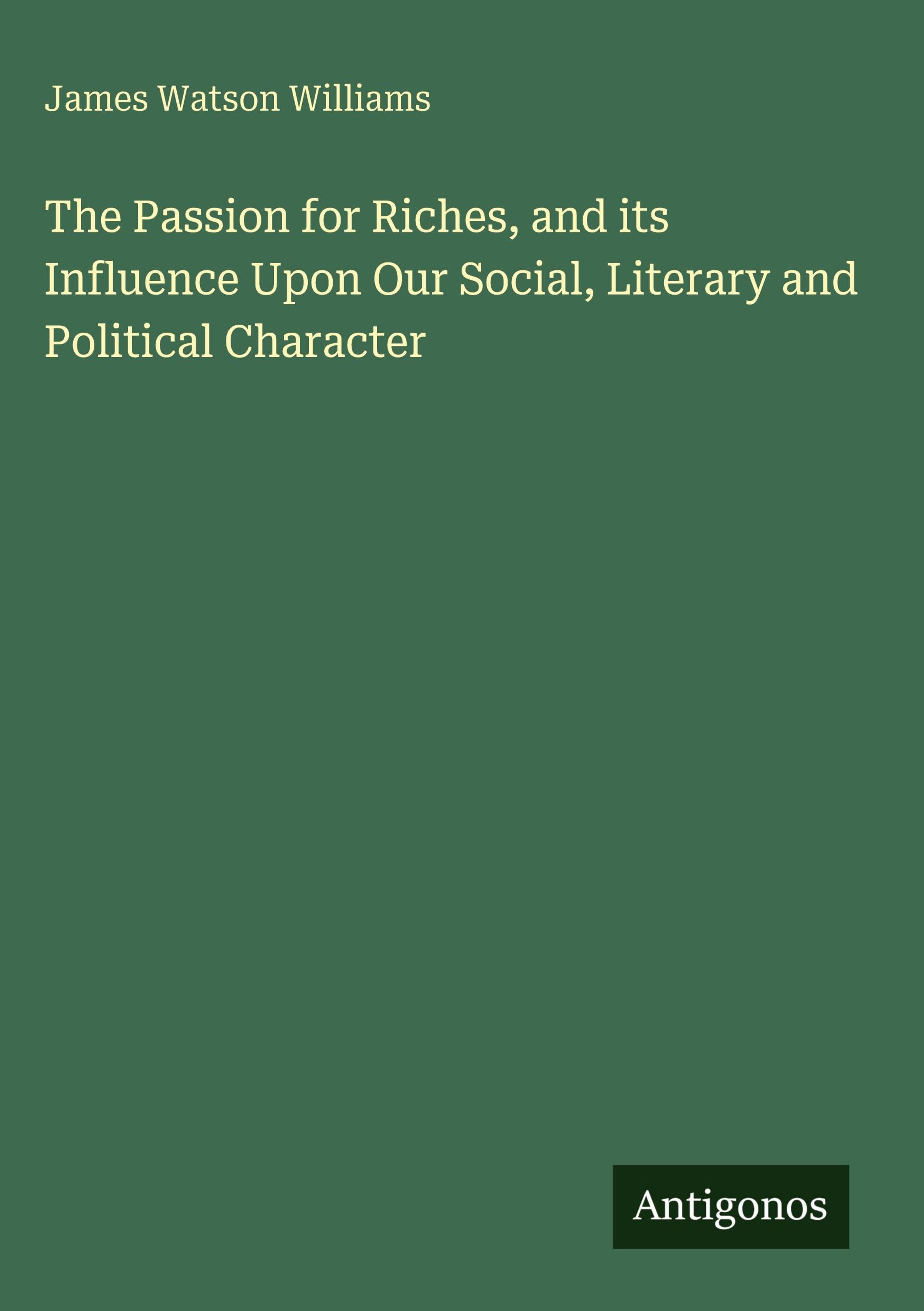James Watson Williams: The Passion for Riches, and its Influence Upon Our Social, Literary and Political Character, Gebunden