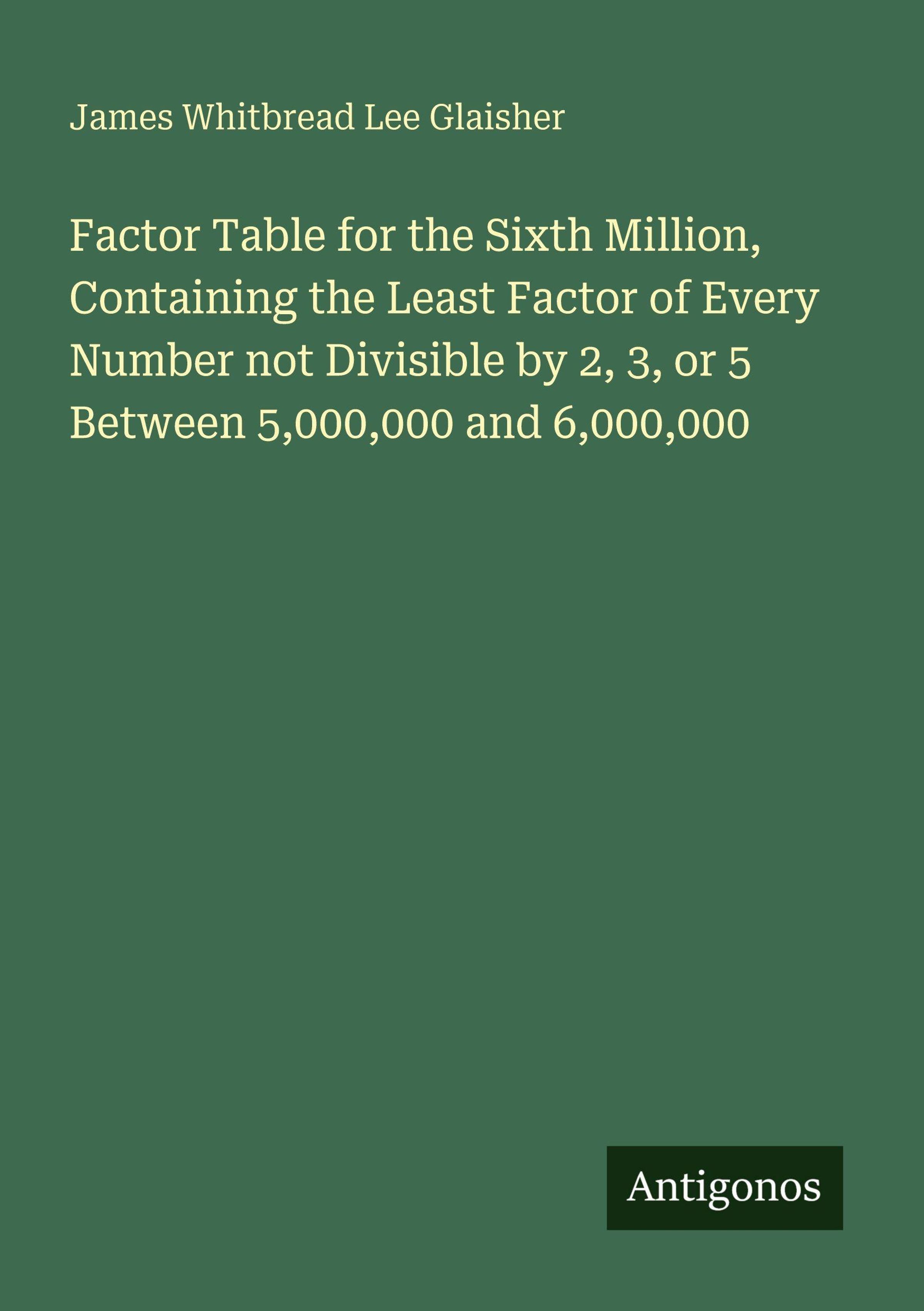 James Whitbread Lee Glaisher: Factor Table for the Sixth Million, Containing the Least Factor of Every Number..., Kartoniert / Broschiert