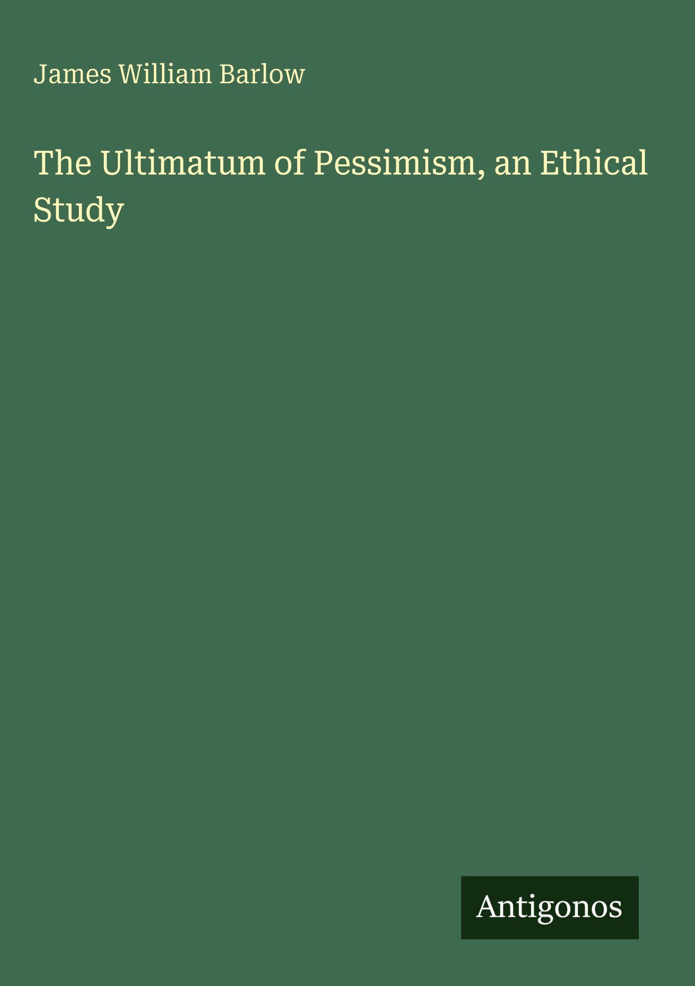 James William Barlow: The Ultimatum of Pessimism, an Ethical Study, Gebunden