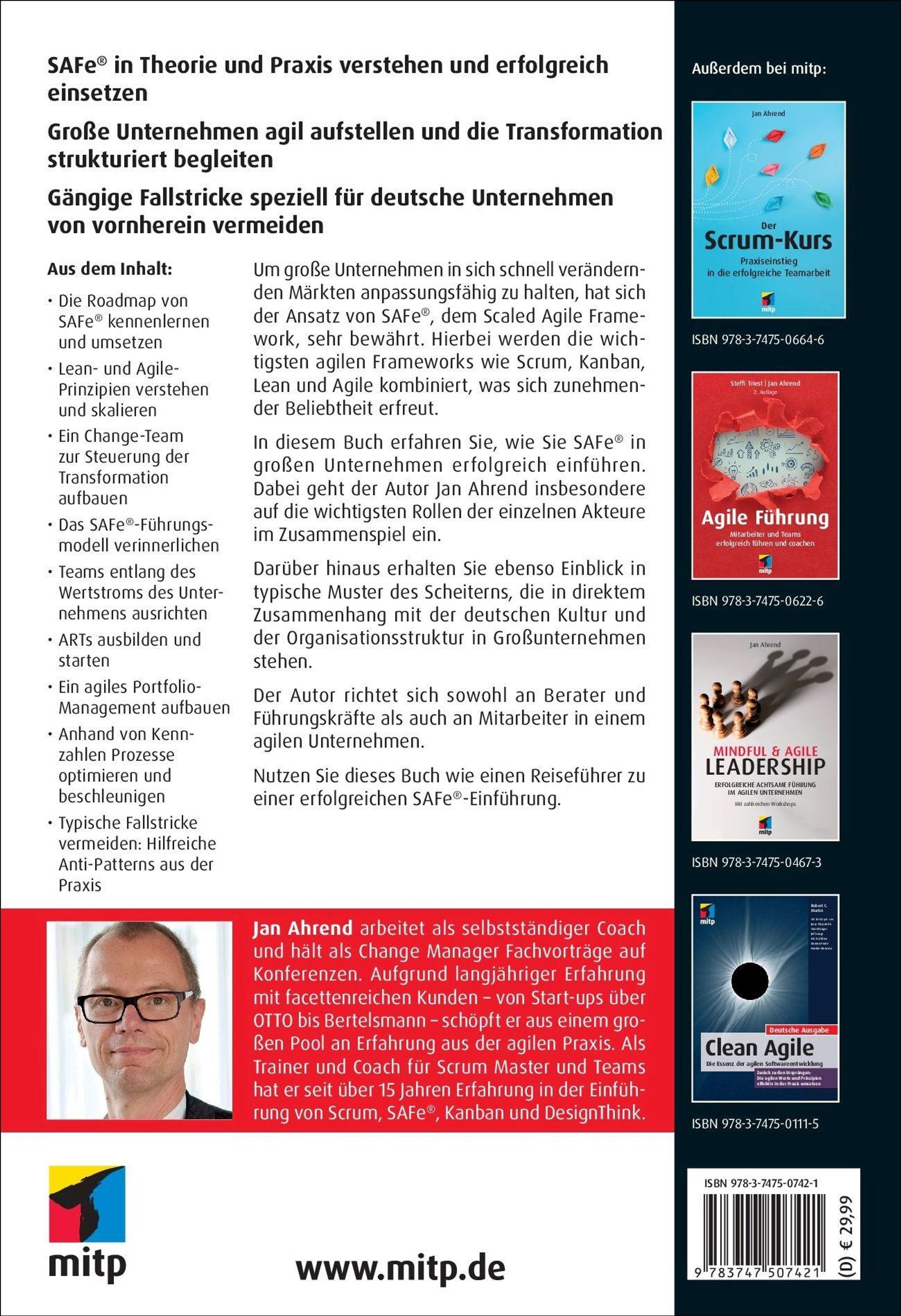 In diesem Buch erfahren Sie, wie Sie SAFe® in großen Unternehmen erfolgreich einführen. Dabei geht der Autor Jan Ahrend insbesondere auf die wichtigsten Rollen der einzelnen Akteure im Zusammenspiel ein.
