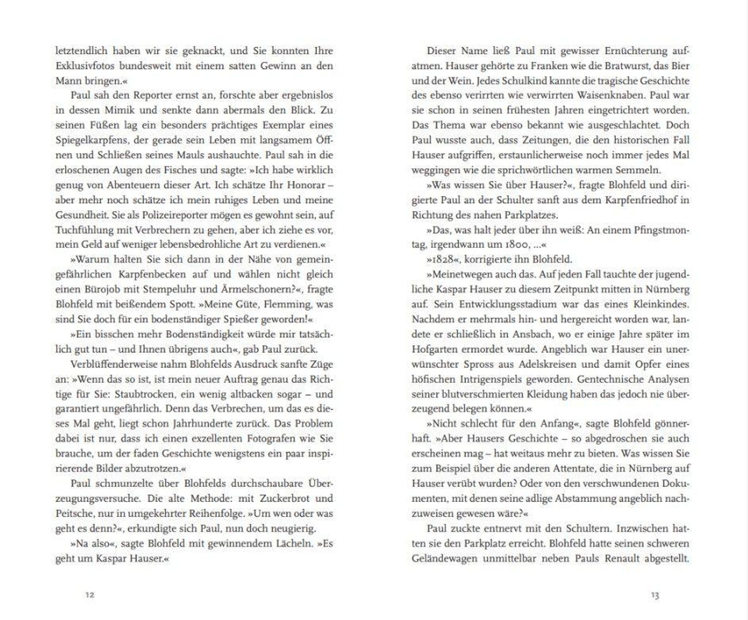 Als der renommierte Kaspar-Hauser-Experte Franz Henlein bei einem Autounfall in Ansbach stirbt, scheint der Fall schnell abgeschlossen. Doch der Fotojournalist Paul Flemming zweifelt an der offiziellen Version. Seine Nachforschungen führen ihn schon bald zu einem zweiten Todesfall: Der Heraldiker Dr. Helmut Sloboda wird tot im Germanischen Nationalmuseum in Nürnberg aufgefunden. Besteht ein Zusammenhang zwischen den beiden mysteriösen Todesfällen?