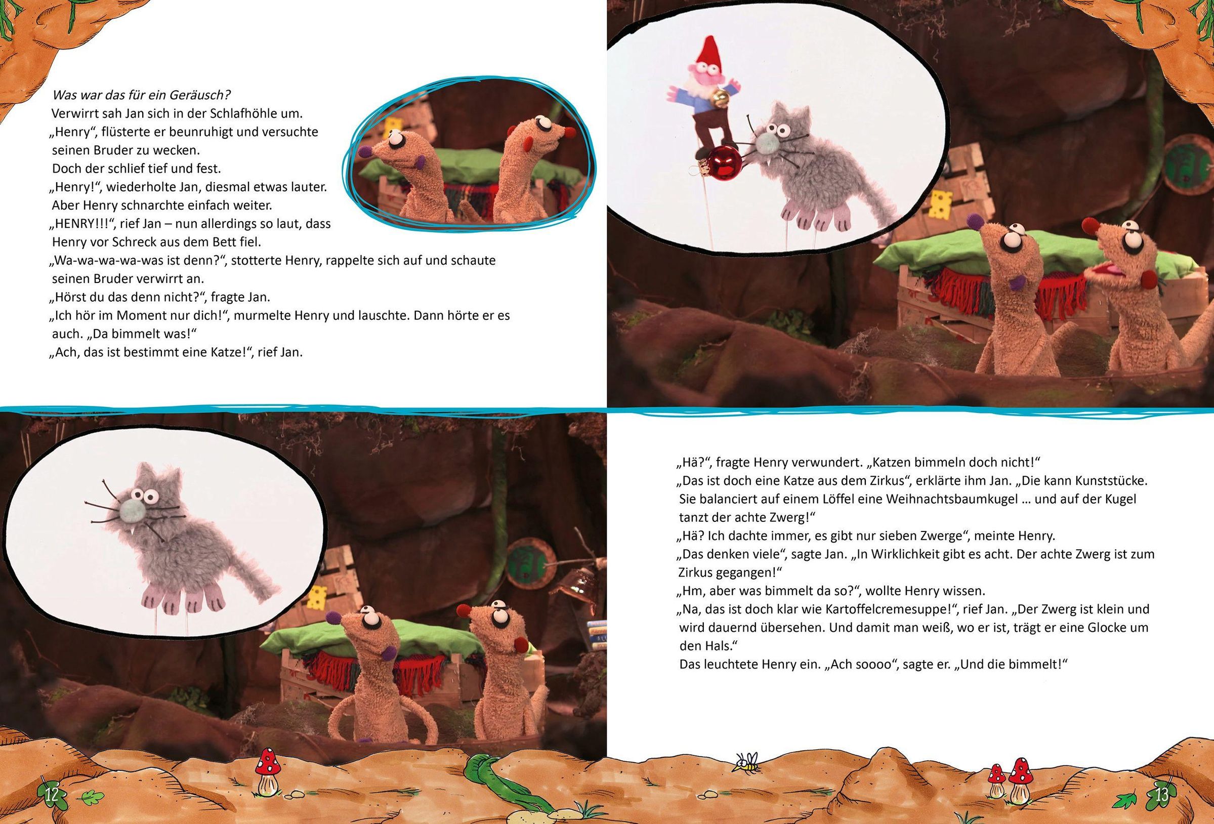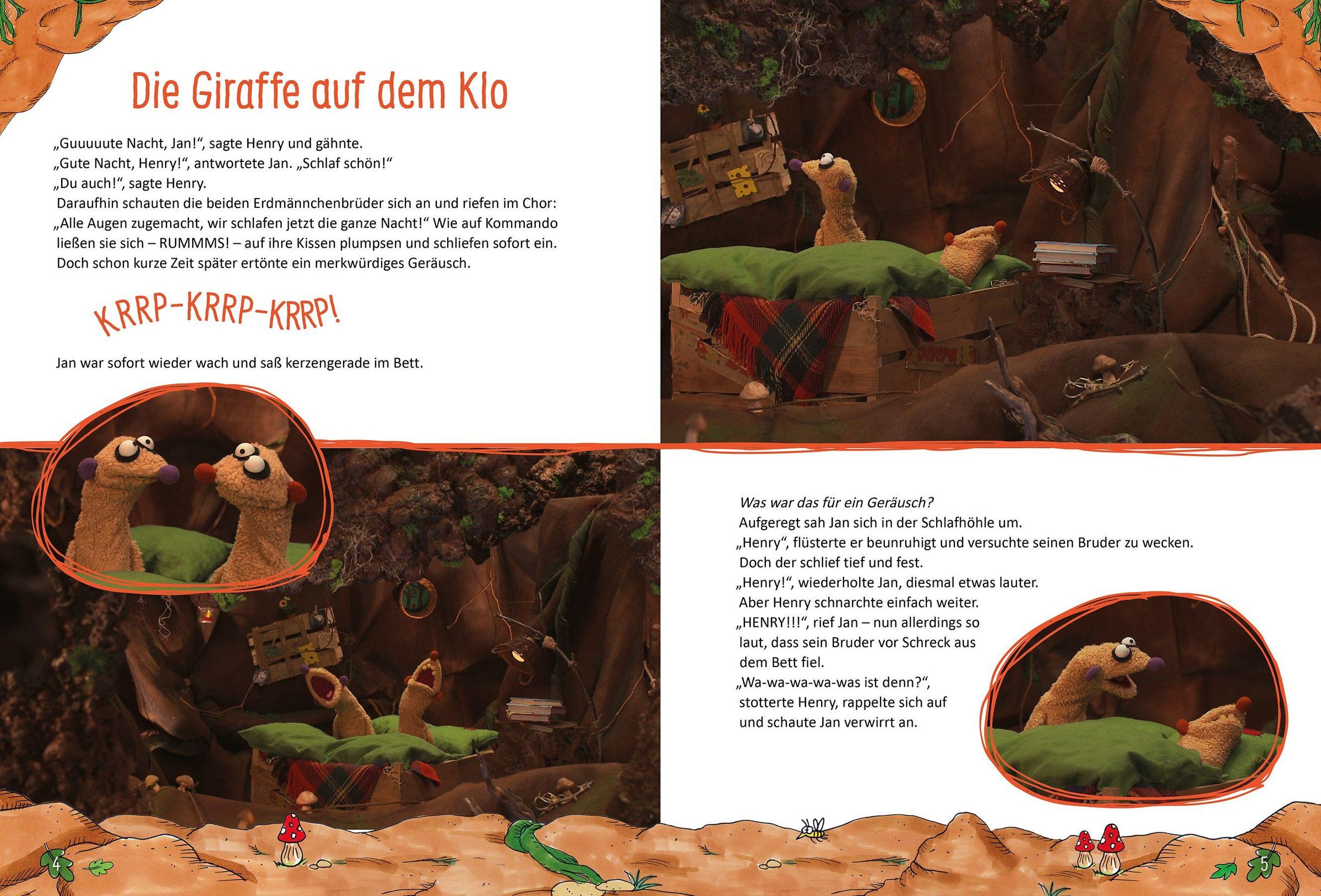 Wenn Jan und Henry schlafen wollen, kommt eigentlich immer etwas dazwischen. Diesmal werden die beiden Erdmännchenbrüder von wirklich seltsamen Geräuschen geweckt. Ist das etwa eine Giraffe, die mit Schluckauf auf dem Klo sitzt? Eine Königin mit einer klappernden Schubkarre voller Schmuck? Oder ein Känguru mit einem Wecker im Beutel? Das vermuten jedenfalls Jan und Henry ... Kleine Spürnasen können mitraten und gemeinsam mit Jan und Henry das Rätsel der Nacht lösen. Sechs lustige Abenteuer für alle Fans von Jan & Henry - perfekt zum Vorlesen vor dem Schlafengehen!