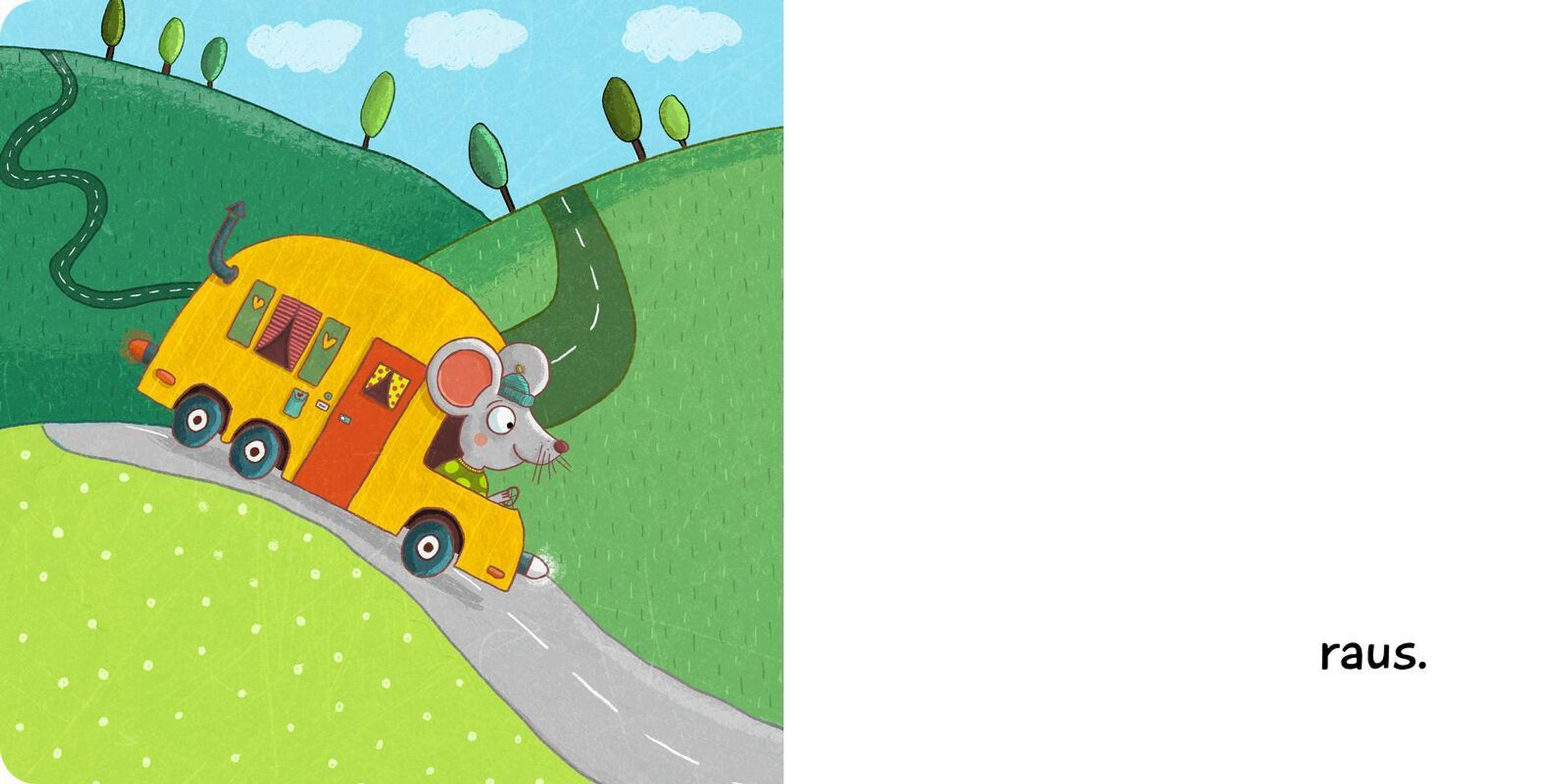 Dieses Pappbilderbuch für Kinder ab 12 Monaten zeigt, wie viel Spaß Sprache machen kann. Auf jeder Seite steht nur ein einziges Wort - und doch eine ganze Welt voller Reime, Rhythmus und Sprachfreude. Wenn eine Maus aus dem Haus in die weite Welt hinauszieht, beginnt ein turbulentes Abenteuer.