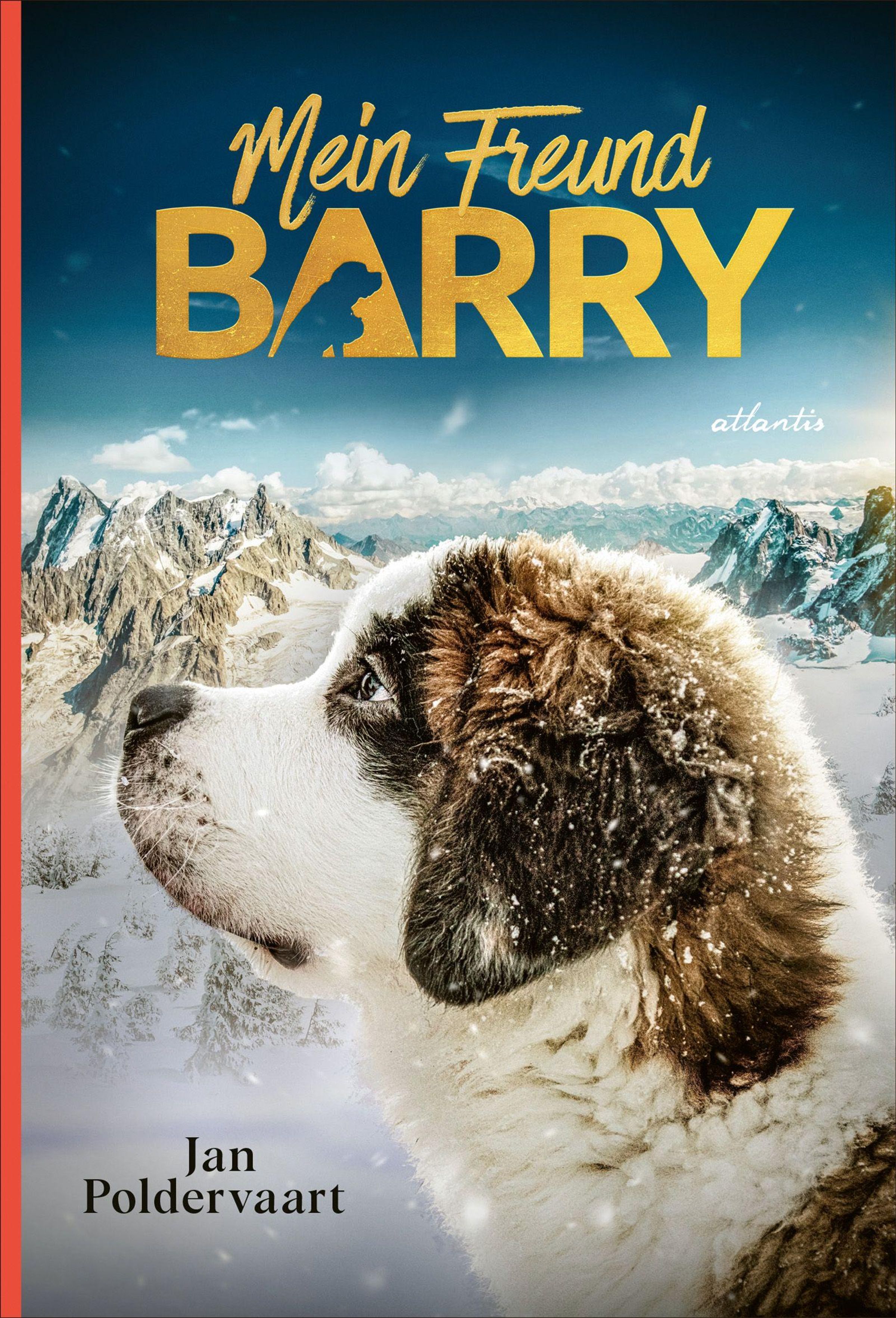 "Mein Freund Barry", "atlantis", "Jan Poldervaart". Profil eines Bernhardinerhunds vor schneebedeckten Bergen., Buch