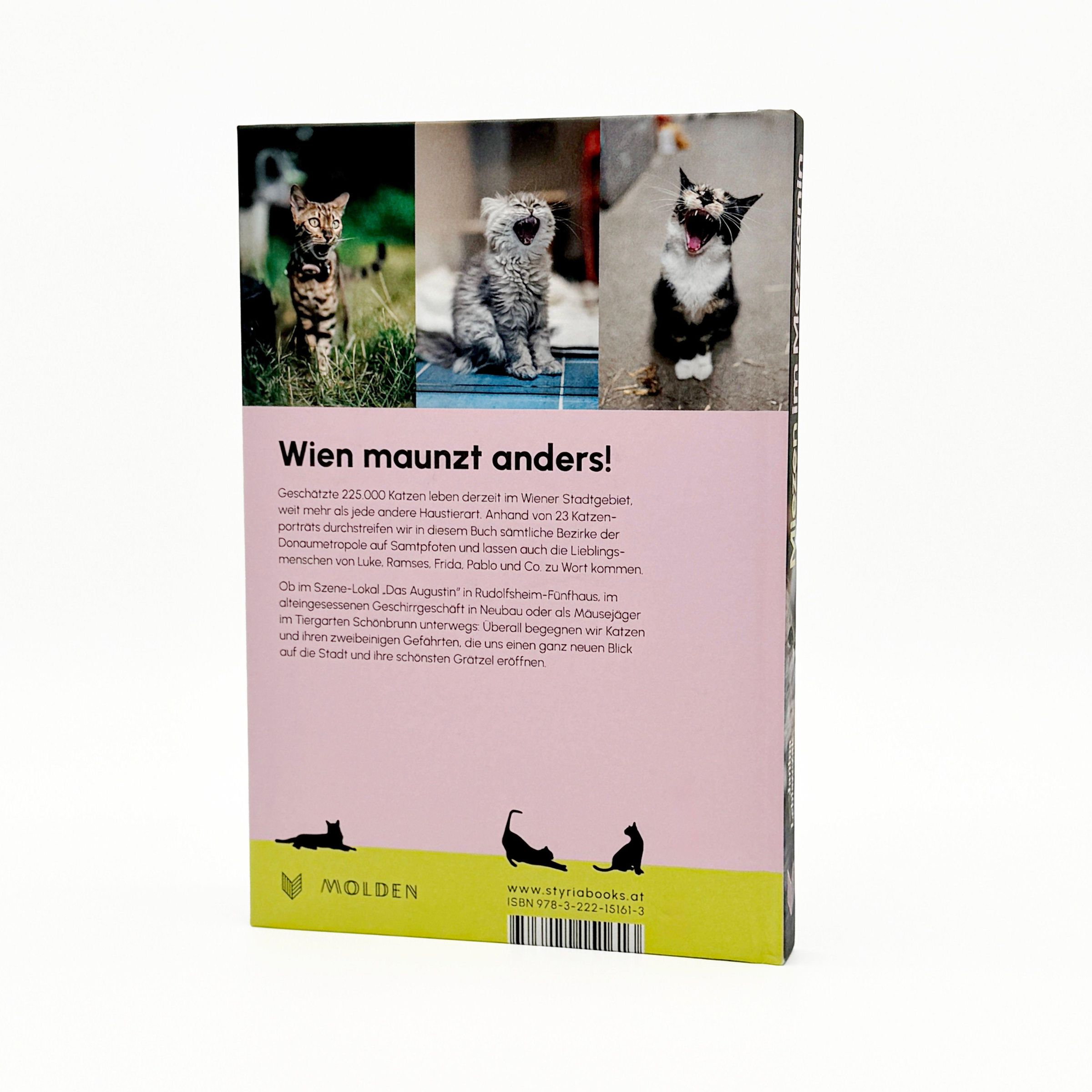 Geschätzte 225.000 Katzen leben derzeit im Wiener Stadtgebiet, weit mehr als jede andere Haustierart. Anhand von 23 Katzenportraits durchstreifen wir in diesem Buch sämtliche Bezirke der Donaumetropole auf Samtpfoten und lassen auch die Lieblingsmenschen von Luke, Ramses, Frida, Pablo und Co. zu Wort kommen.