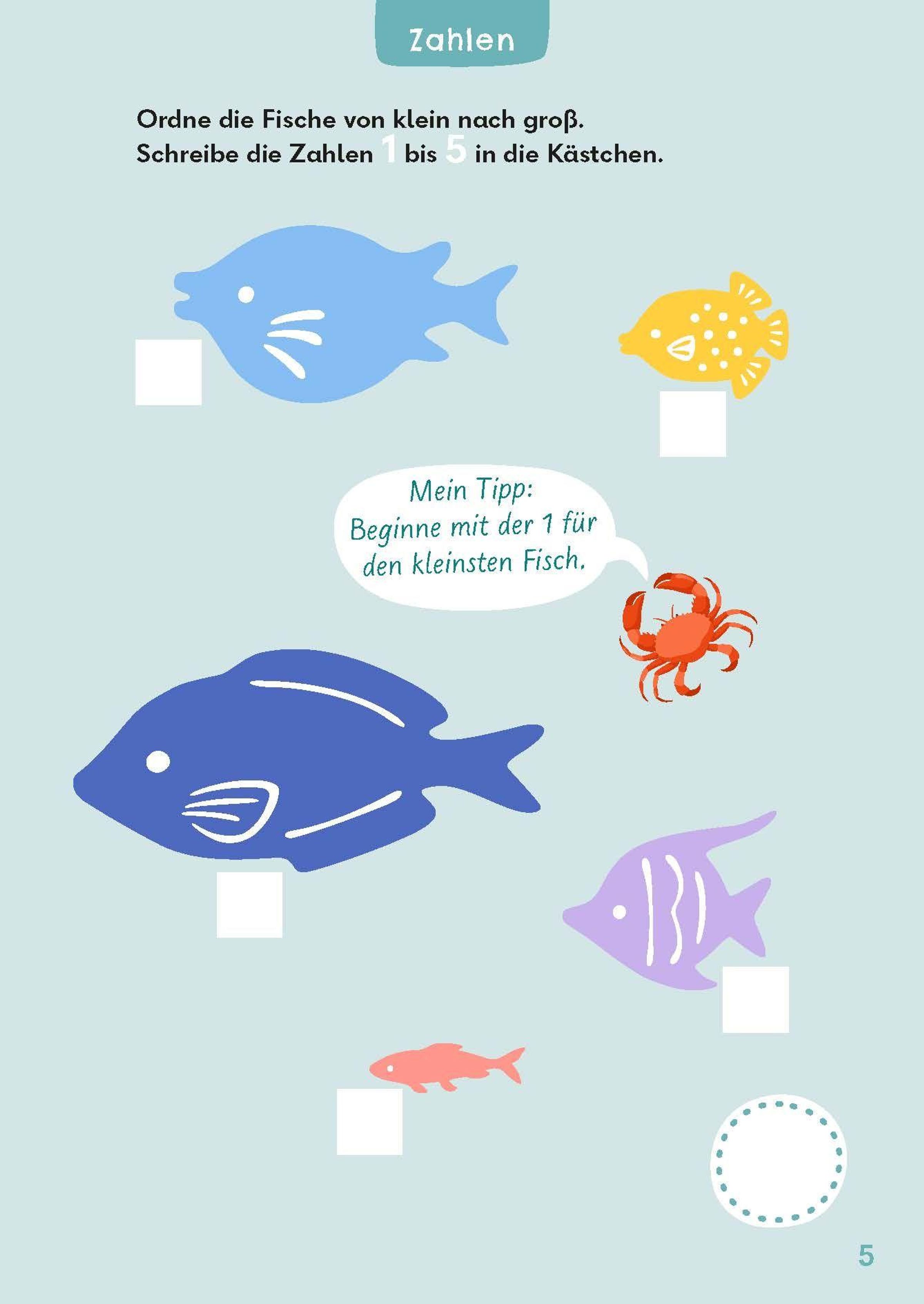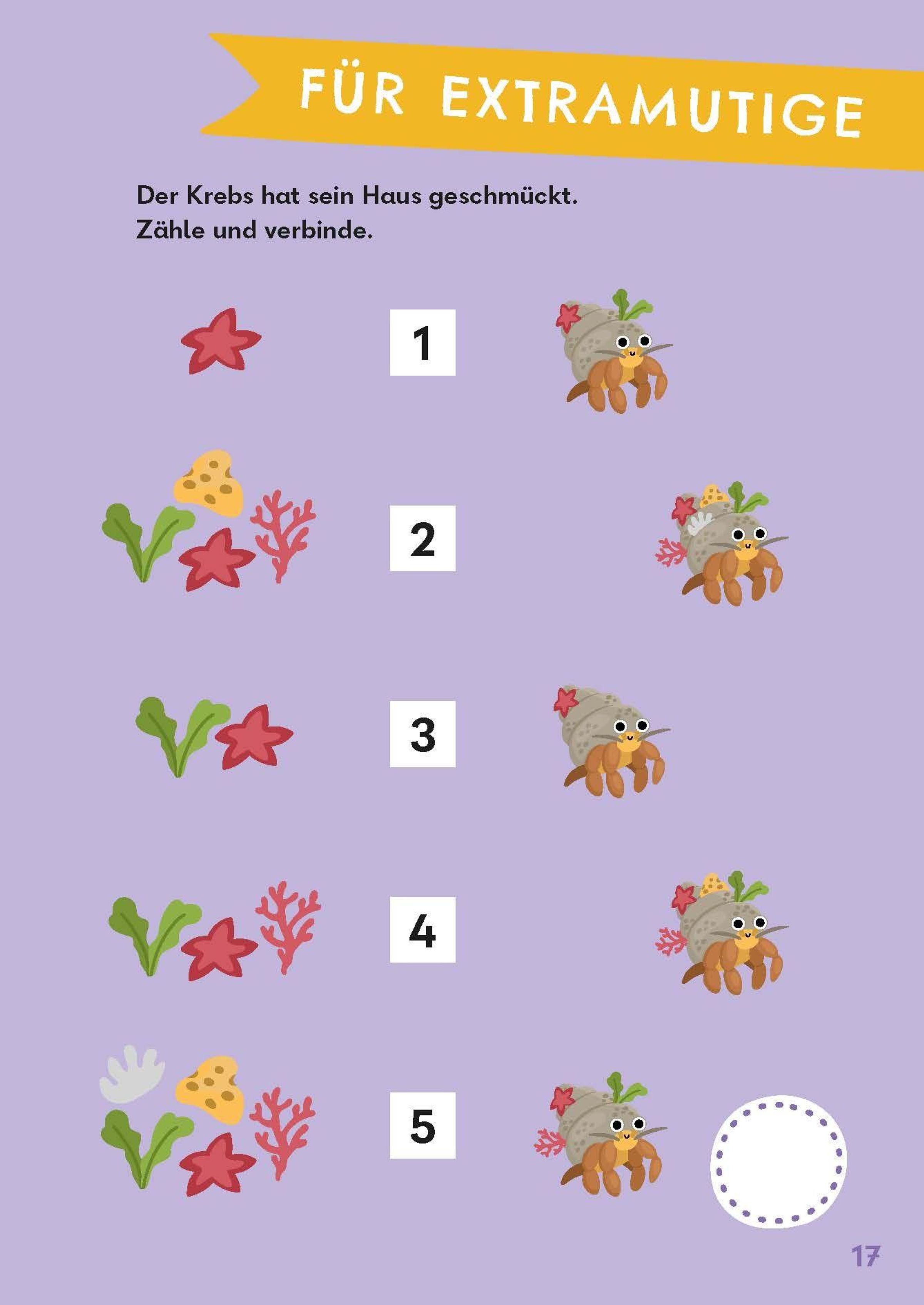 Mit diesem Mathe-Rätselbuch tauchen Kinder in die fabelhafte Welt der Zahlen ein - und zugleich in das aufregende Leben unter Wasser. Hier begegnen sie hungrigen Haien, schillernden Doktorfischen und gigantischen Walen. Ganz nebenbei üben sie spielerisch das Zählen und Rechnen im Zahlenraum bis 20. Ein bisschen Mut gehört auch dazu, wenn man dem Weißen Hai beim Rückwärtszählen helfen soll - oder ausrechnen will, wie viele Muscheln der Tintenfisch gefressen hat. Zur Entspannung kann man dann noch ein paar glibberige Quallen zählen. Ein unterhaltsamer Knobelspaß - egal ob am Strand oder zu Hause.