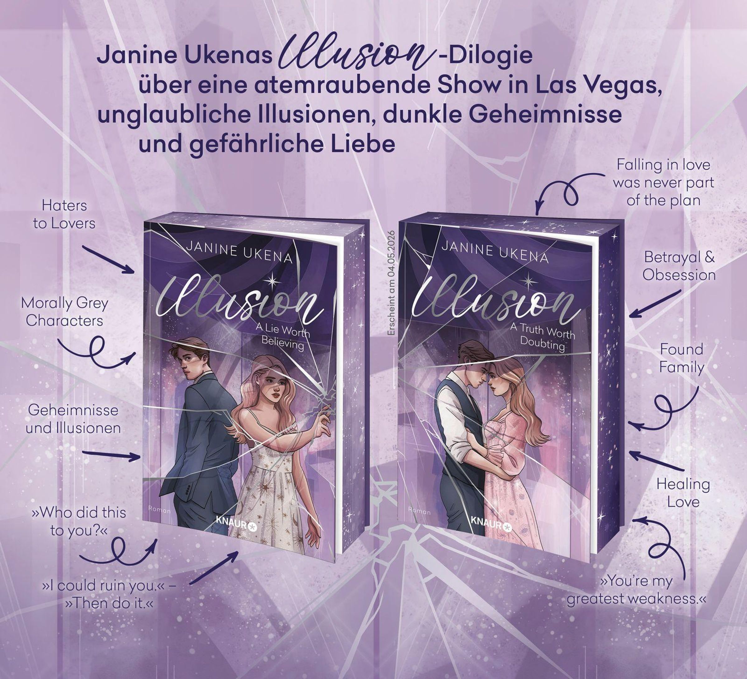 Lass dich von SPIEGEL-Bestseller-Autorin Janine Ukena ins glitzernde Las Vegas und hinter die Kulissen einer ganz besonderen Illusionsshow entführen. Ein fesselnder Mix aus Romance und Suspense mit diesen Tropes erwartet dich:
