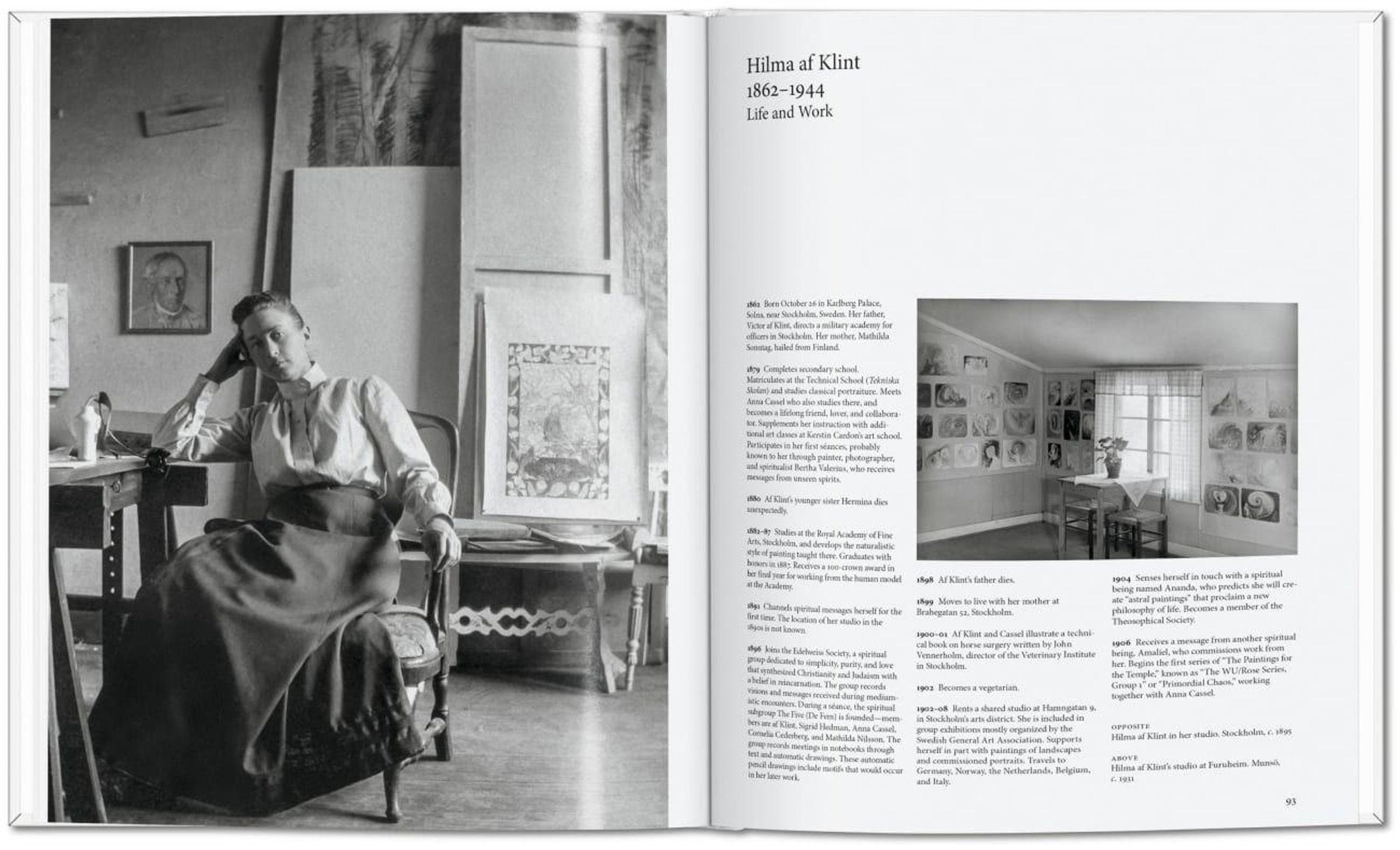 Ihre Kunst war untrennbar mit ihrer spirituellen Praxis verbunden. Mit einem Kreis von Künstlerinnen namens De Fem ("Die Fünf") hielt sie Séancen ab, hörte Stimmen von hohen Meistern und ließ sich von der Theosophischen Gesellschaft und den Theorien Rudolf Steiners inspirieren. Unermüdlich arbeitete sie daran, die verborgenen Dimensionen des Lebens zu kartografieren, und malte bis zur körperlichen Erschöpfung.